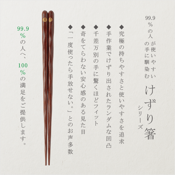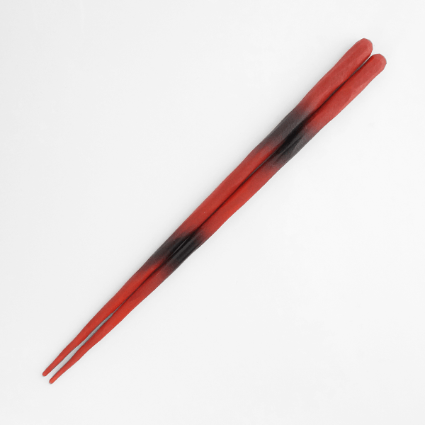あすなろの木地にすり漆を施すと、ザラザラとした肌触りが生まれます。けずり箸の微妙な凹凸は手に馴染みがよく、持ちやすくつかみやすいお箸です。