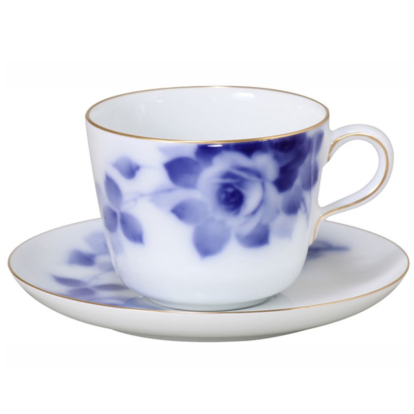 自然に青いバラの花を咲かせることは不可能だと言われていた時代、その奇跡をデザインしたのが大倉陶園の「ブルーローズ」。大倉陶園独自の「岡染め」技法により白磁に溶け込み、優しく咲き誇る紺青の美しさには誰もが目を見張ります。