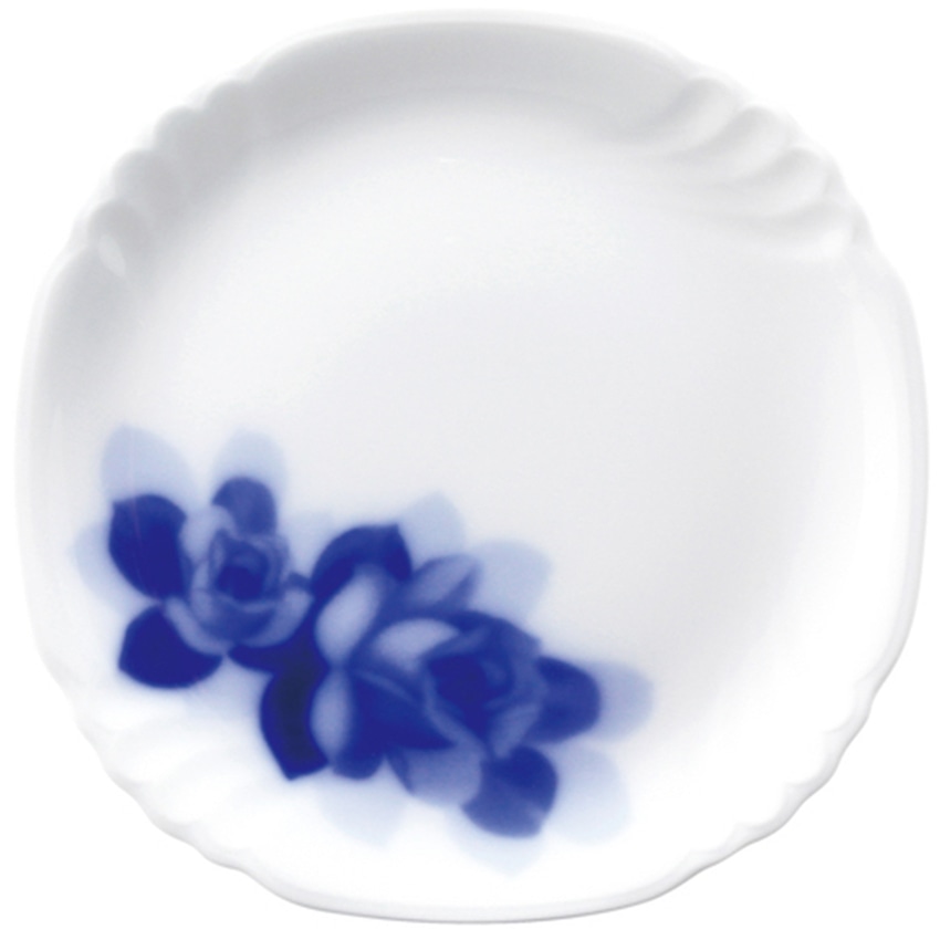 大倉陶園を代表する絵柄「ブルーローズ」を二輪咲かせることで、あたたかさと華やかさを表現しています。