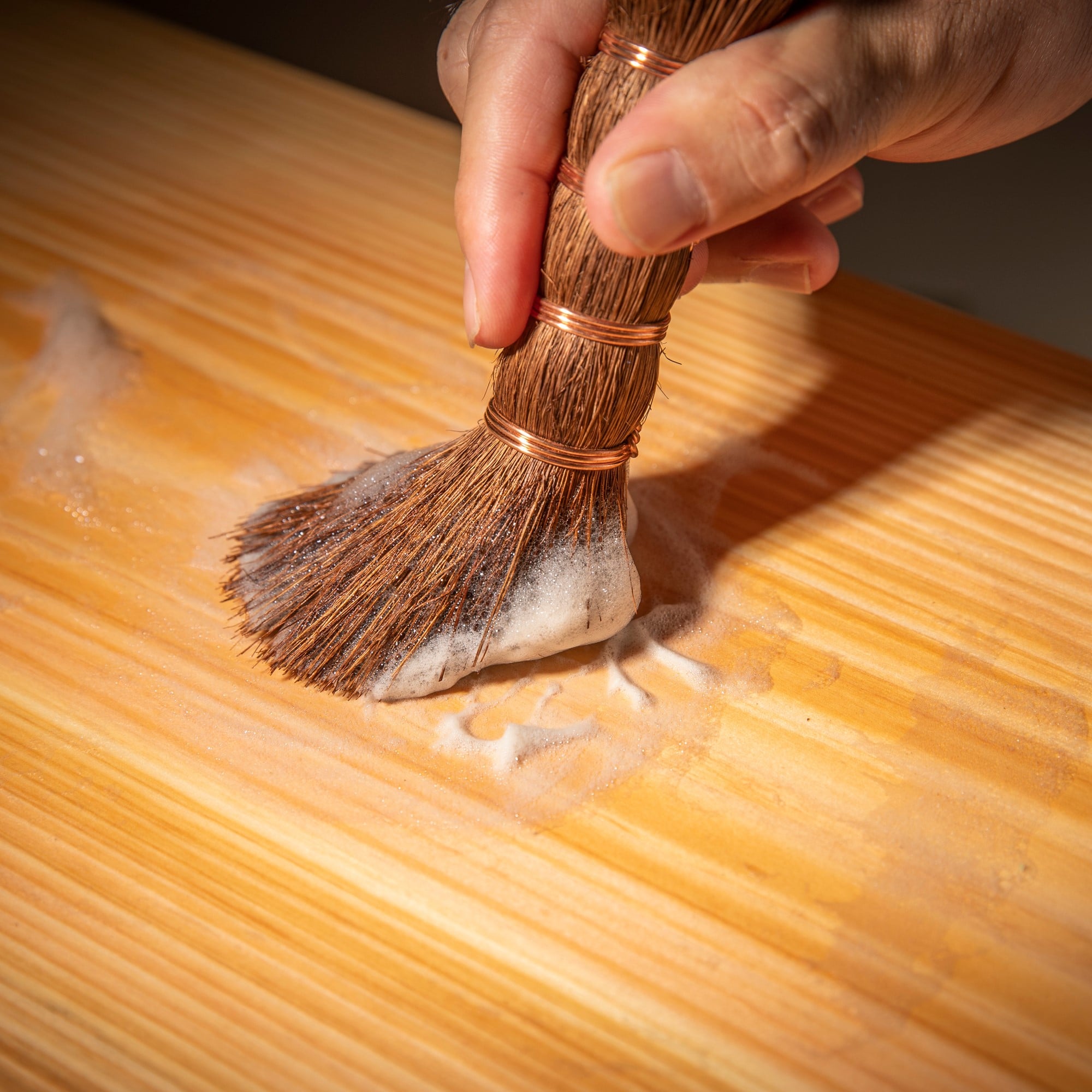 ・天然素材を使用しており、素材由来の粉が出ますので、最初にご使用いただく前に食器用洗剤を付け、もみ洗いをしてからご使用ください。