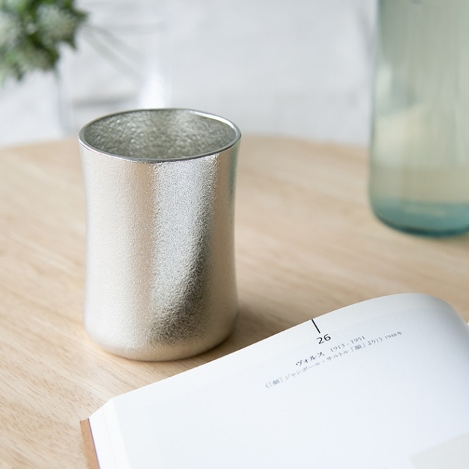 錫(すず)100%のやわらかい特性を生かしたフォルムのタンブラーです。