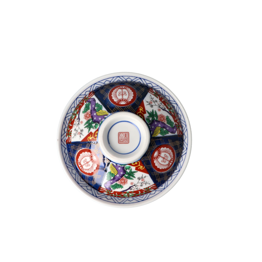 シャープな形の蓋丼はお茶漬け用。用途によって形状やサイズが異なるうつわがあるのは、食を探求する日本ならではの文化です。錦牡丹の華やかな紋様は食欲のない時でも元気を演出してくれます。