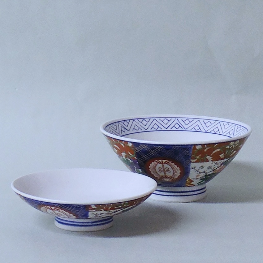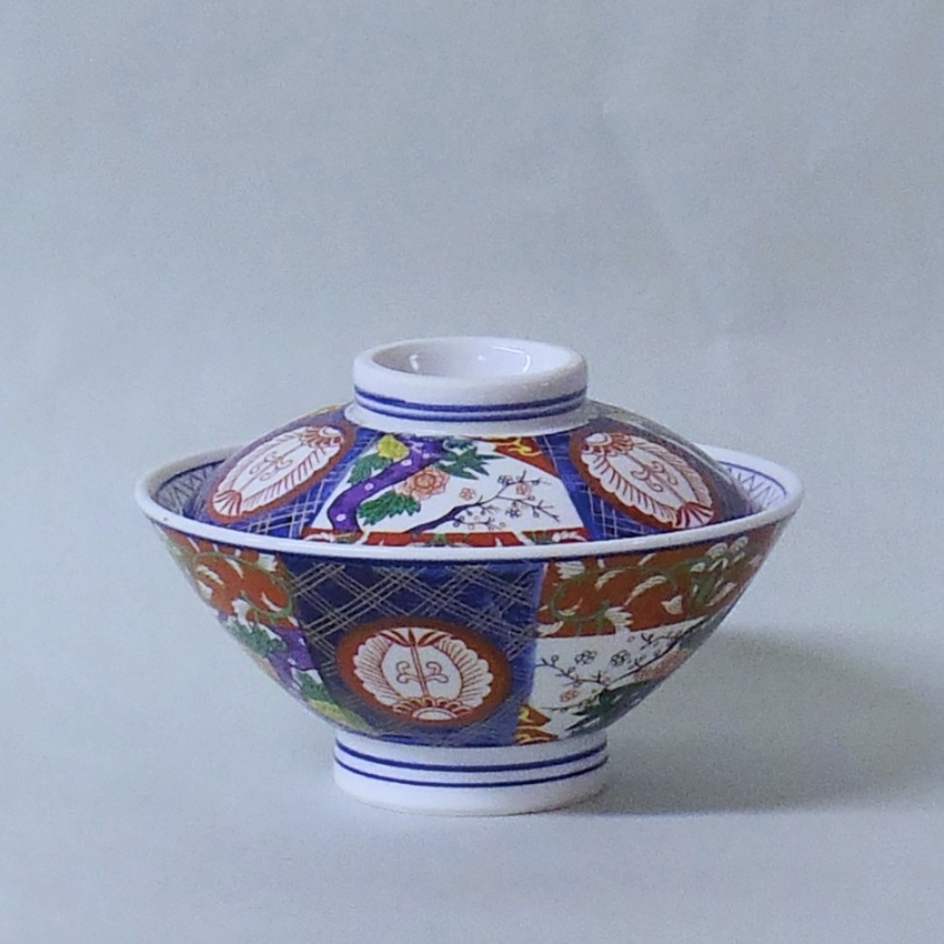 シャープな形の蓋丼はお茶漬け用。用途によって形状やサイズが異なるうつわがあるのは、食を探求する日本ならではの文化です。錦牡丹の華やかな紋様は食欲のない時でも元気を演出してくれます。