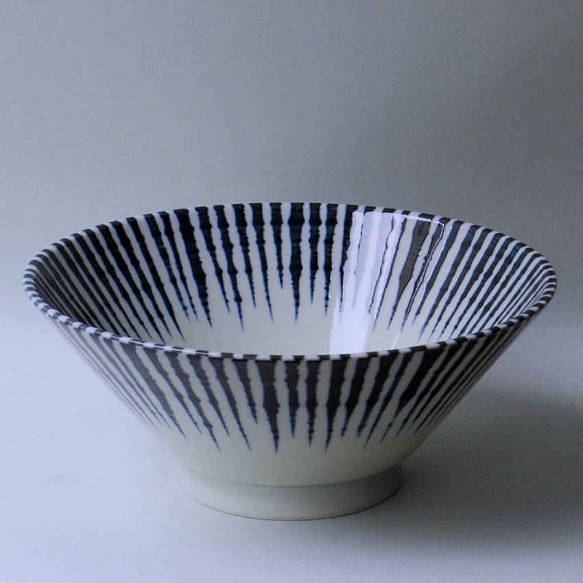 スッキリした十草とシャープなデザインが特徴的な反り丼。シンプルな紋様は定番醤油味や塩味のラーメンによく合います。