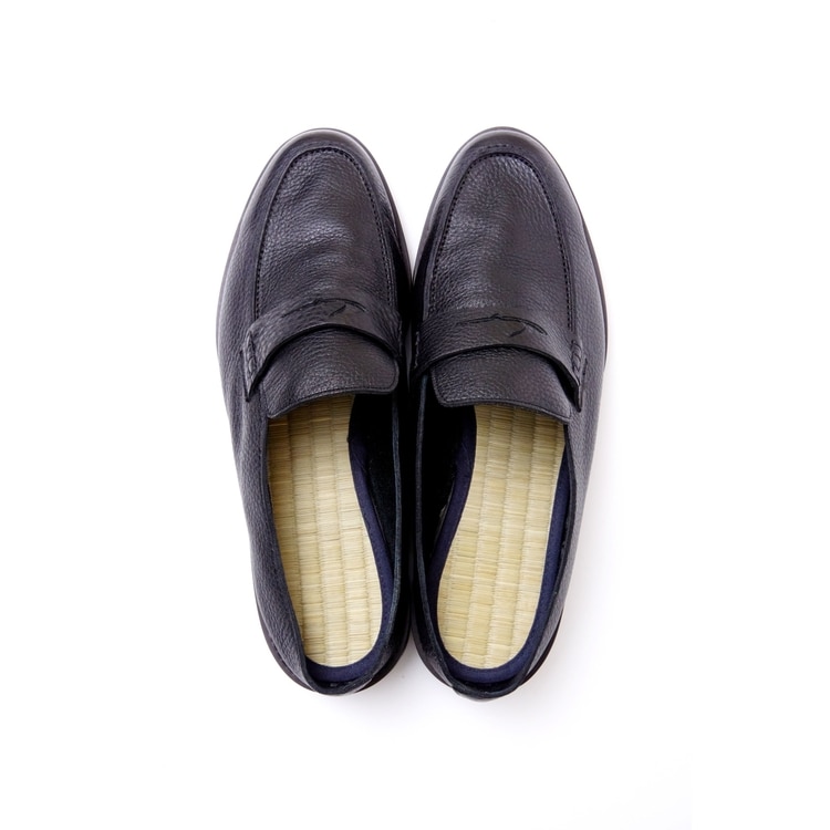 シボ加工が施された上質なレザーと鮮やかな畳インソールによる、