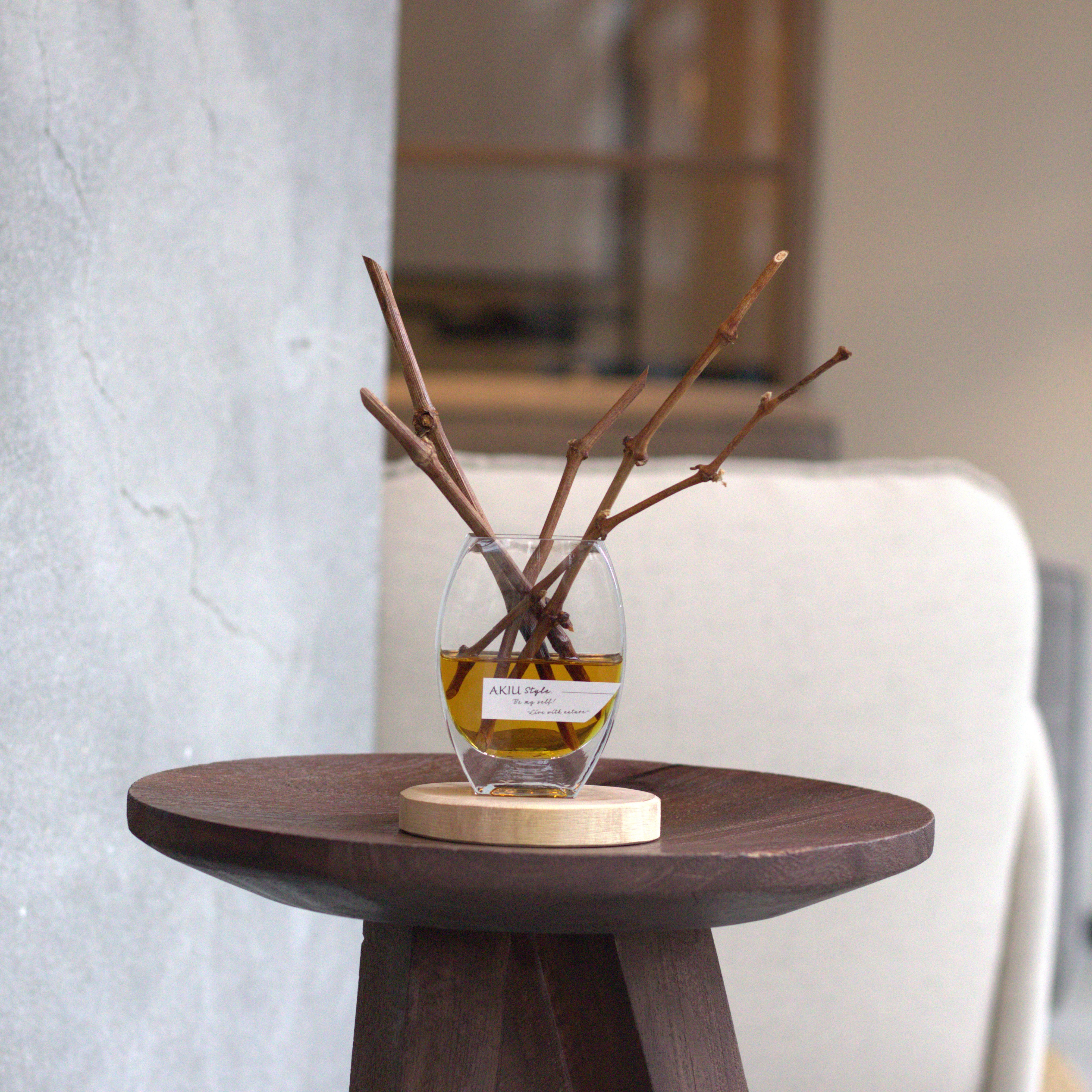 東日本大震災後、地域を活性する拠点として生まれた、宮城県仙台市に位置する秋保ワイナリー。年間約1.5トンを超える膨大な排気量の葡萄のツルを余すことなく活用したいという想いから生まれたミニサイズのリードディフューザー。