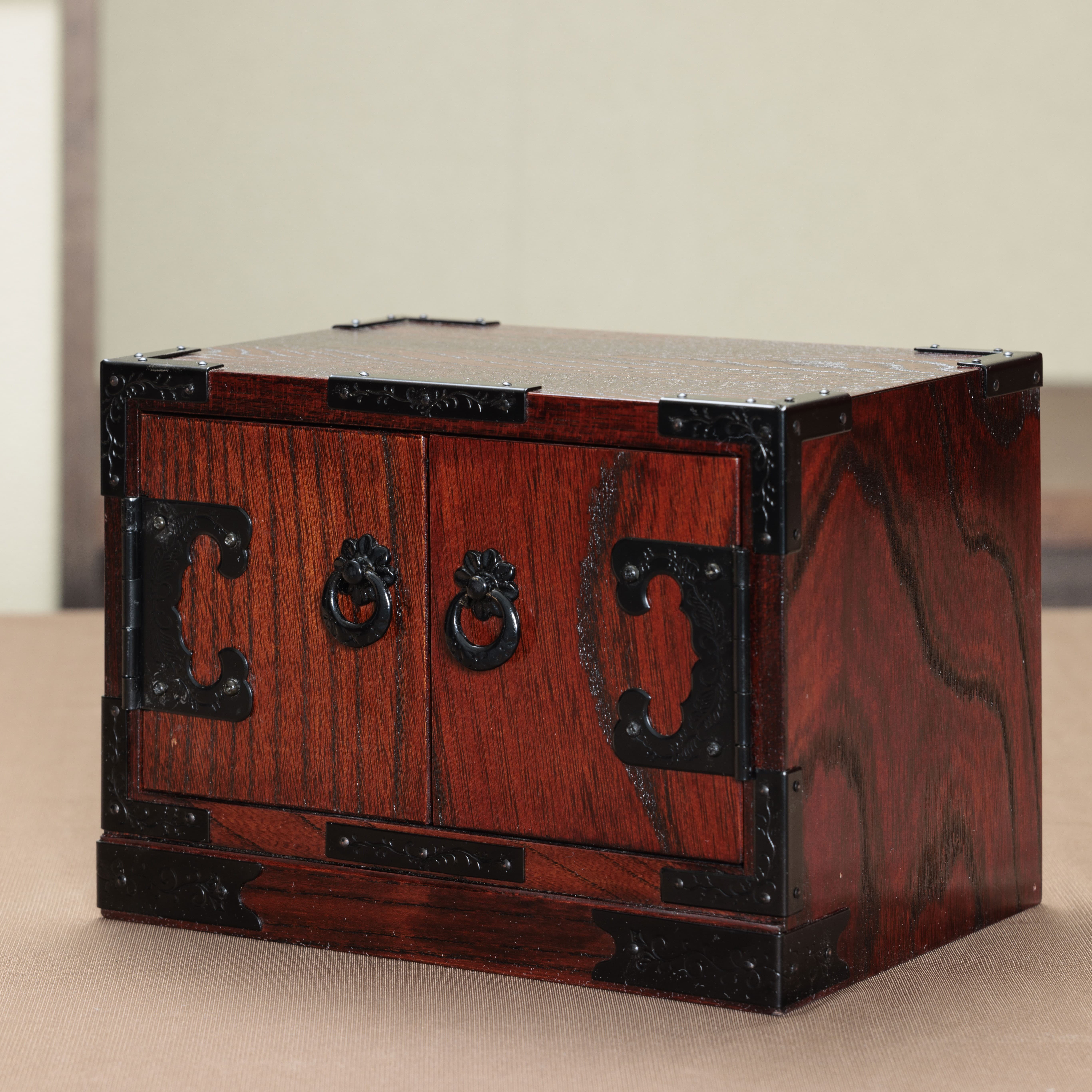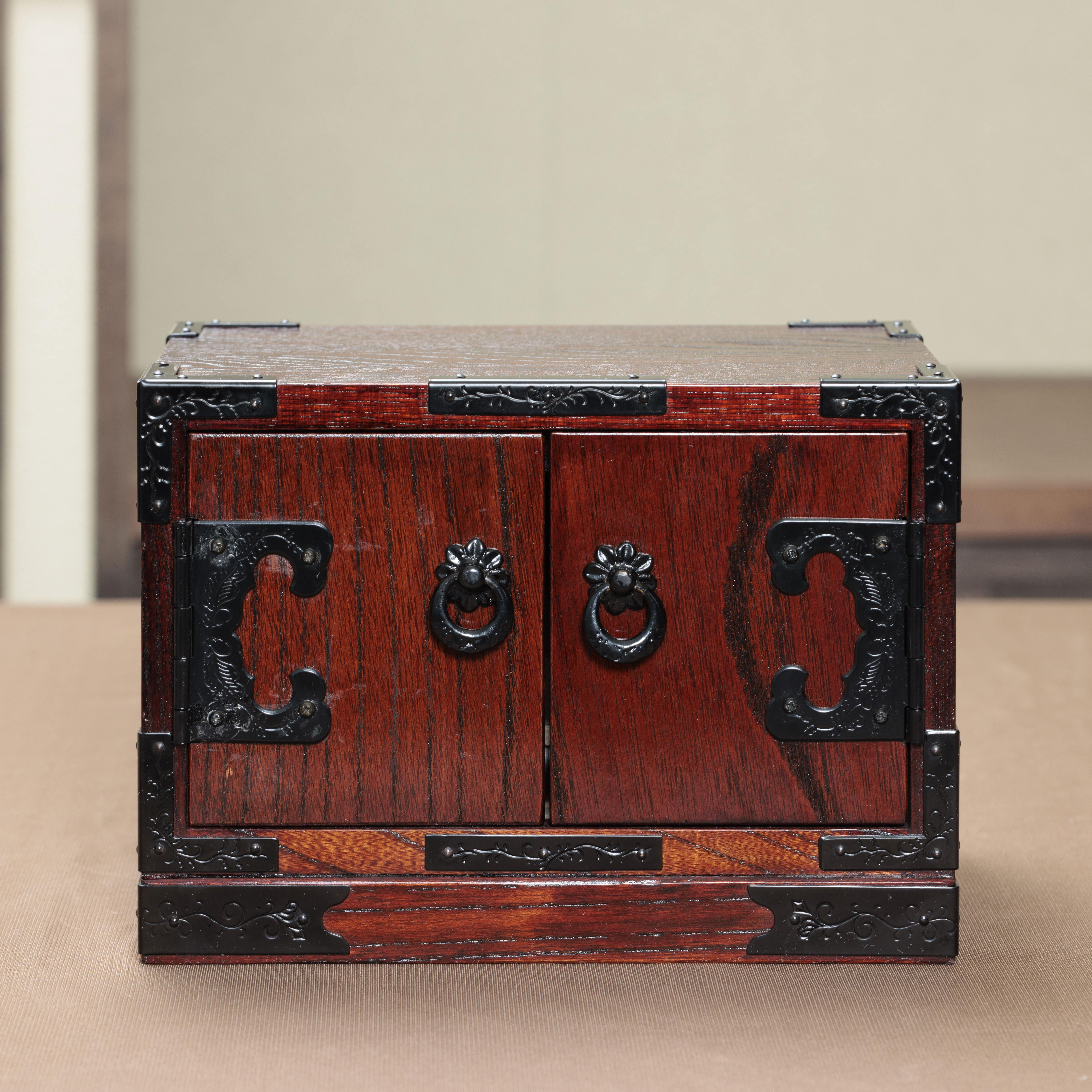 【商品説明文】本製品は仙台箪笥の製造技法(技法・素材・塗装)と同じ工程で製作しております。時計、指輪、ブレスレットなど複数入れることができ、男女問わず「特別なもの」を大切に保管できるBOXです。観音扉を開いたあと、アクセサリーを取り出しやすいように抽斗を設けております。支度の度に気持ちが上がる、そんな商品です。