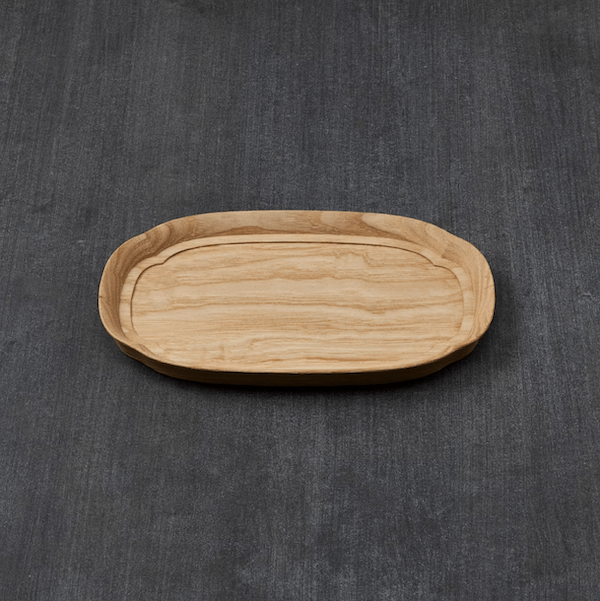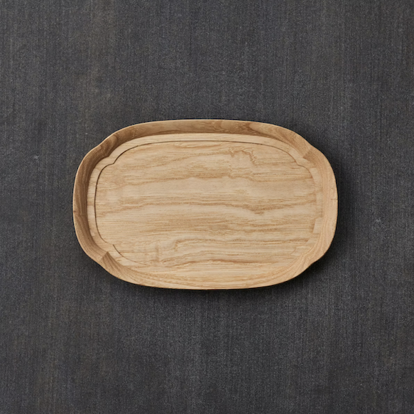 木瓜(もっこう)型を長くしたような形。何を乗せても収まりがよく、テーブルで大活躍してくれます。縁は手がかかり持ちやすくなっています。 大中小の3サイズあります。