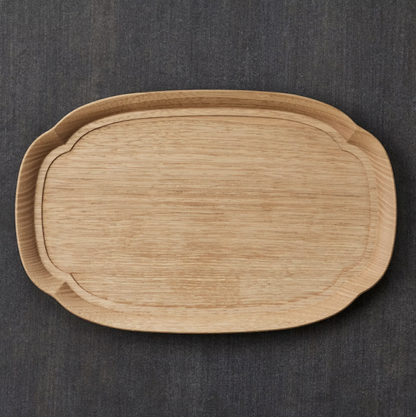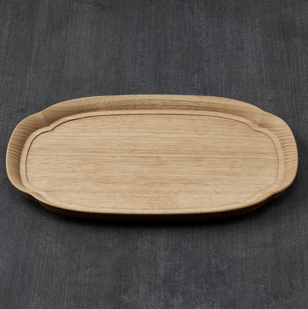 木瓜(もっこう)型を長くしたような形。何を乗せても収まりがよく、テーブルで大活躍してくれます。縁は手がかかり持ちやすくなっています。 大中小の3サイズあります。