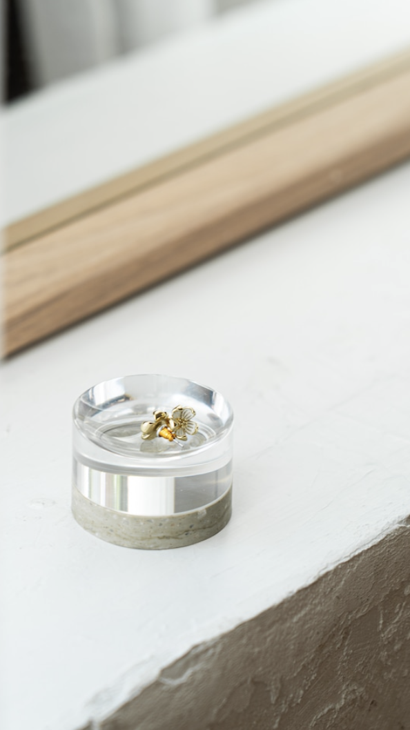 「Dimple」は、アクリルに彫られた浅い凹みが特徴の小物置き。