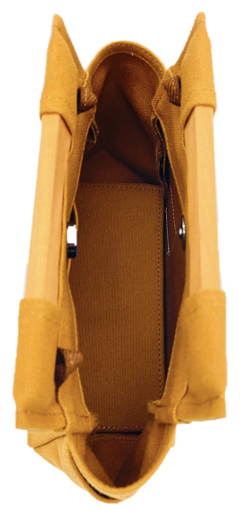 本体生地はブランド帆布のとてもタフな富士金梅8号を使用し、スマホと二つ折り財布が入るアクセントファッションとしてお使いいただく可愛いサイズになります。