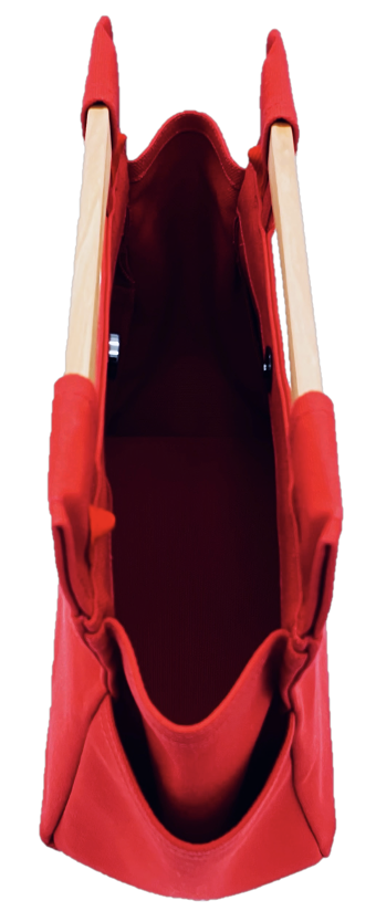 このバッグのハンドルは、香川県内で公共工事の際に伐採された天然林の山桜を使用しています。高級家具の製造から外れた木材をハンドルへと加工した新しいスタイルのアップサイクル商品です。