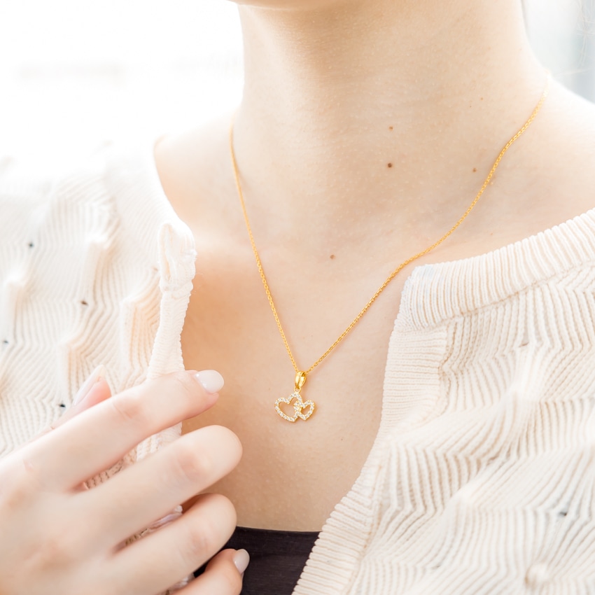 寄り添うハートのモチーフが、身に着ける人の毎日をやさしく彩ります。