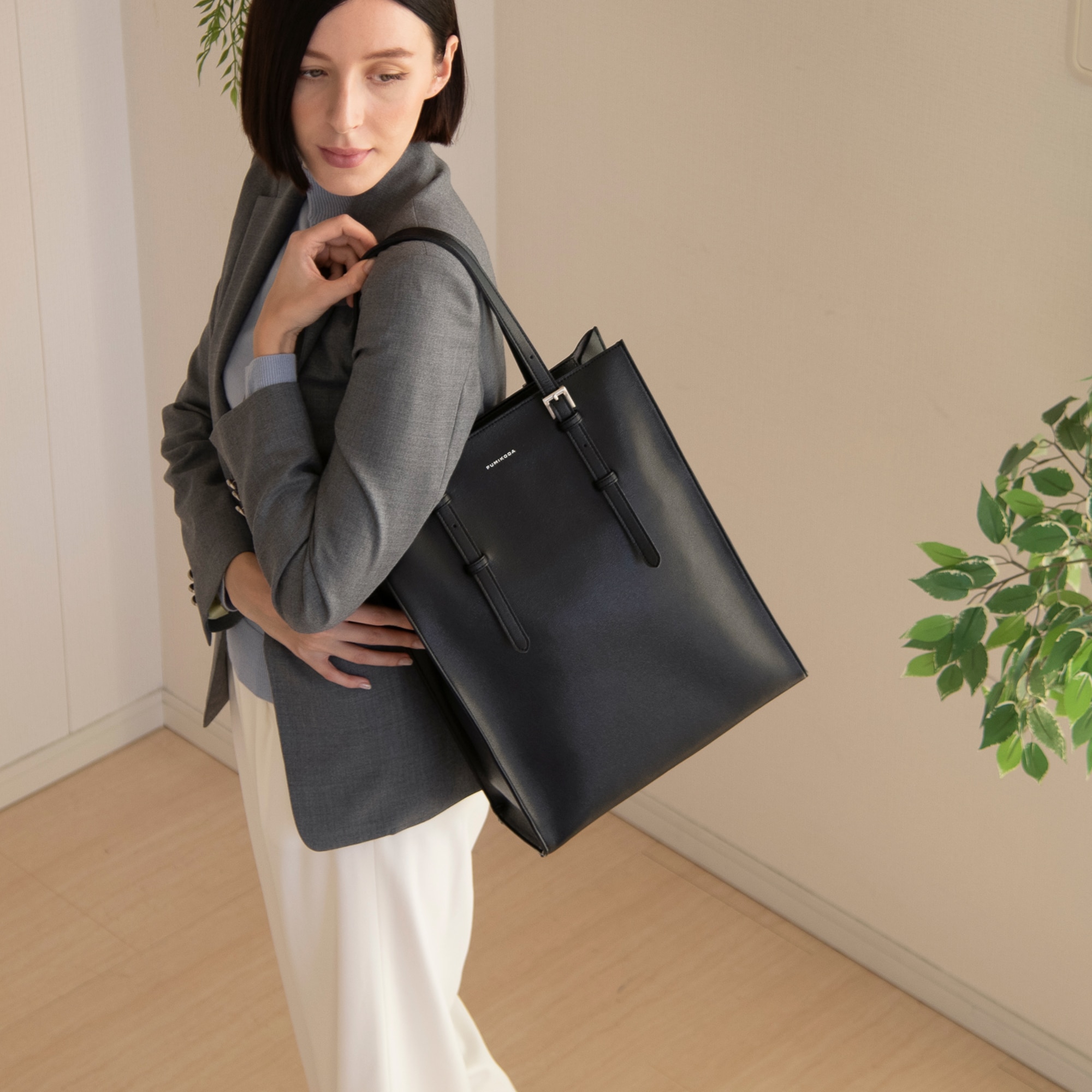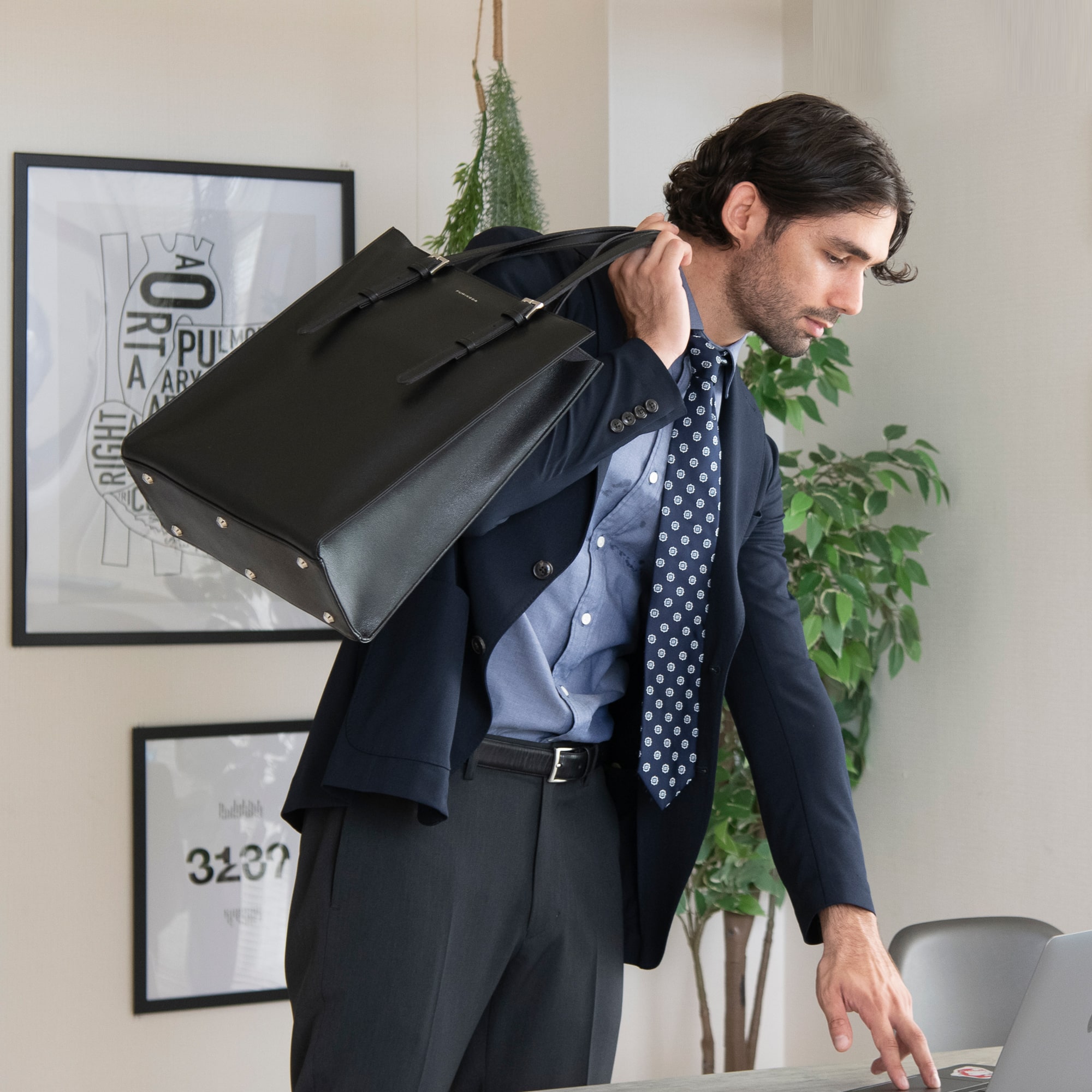 ビジネスシーンを快適にする縦型トートバッグ。