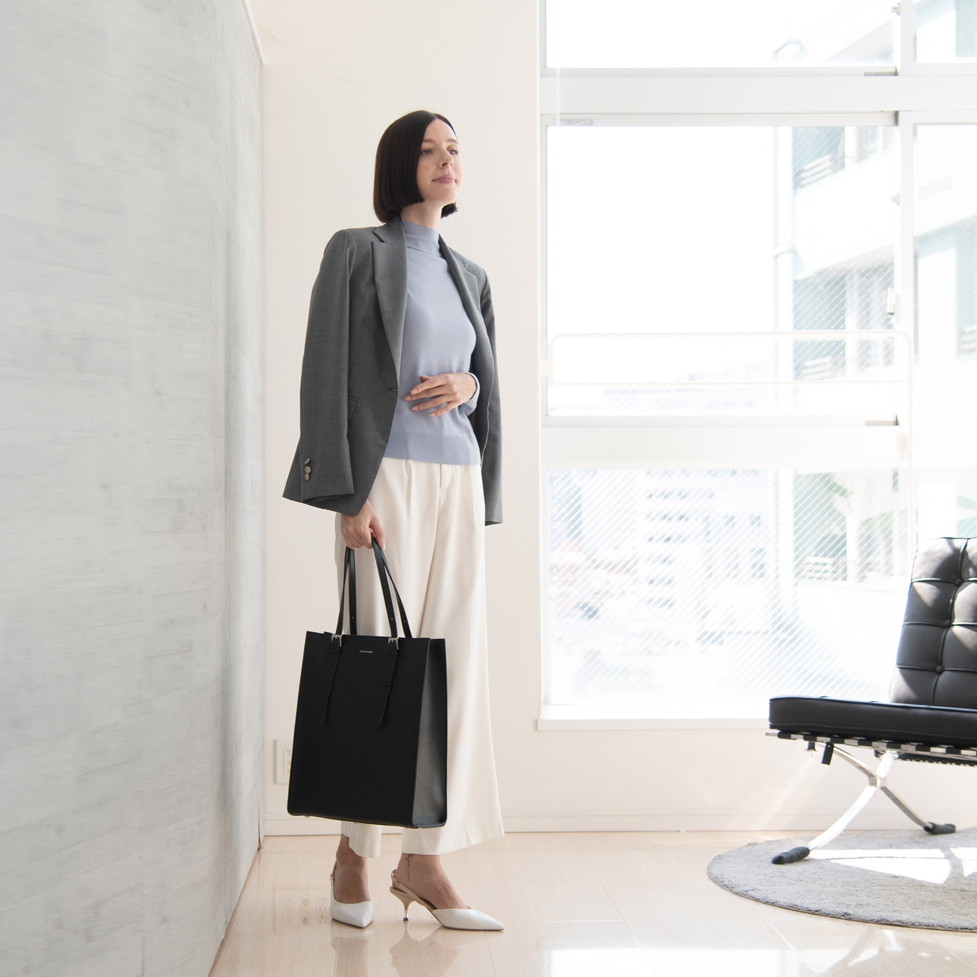 外出先でもスマートに足元へ置けるよう設計された、機能性と美しさを兼ね備えたデザインです。