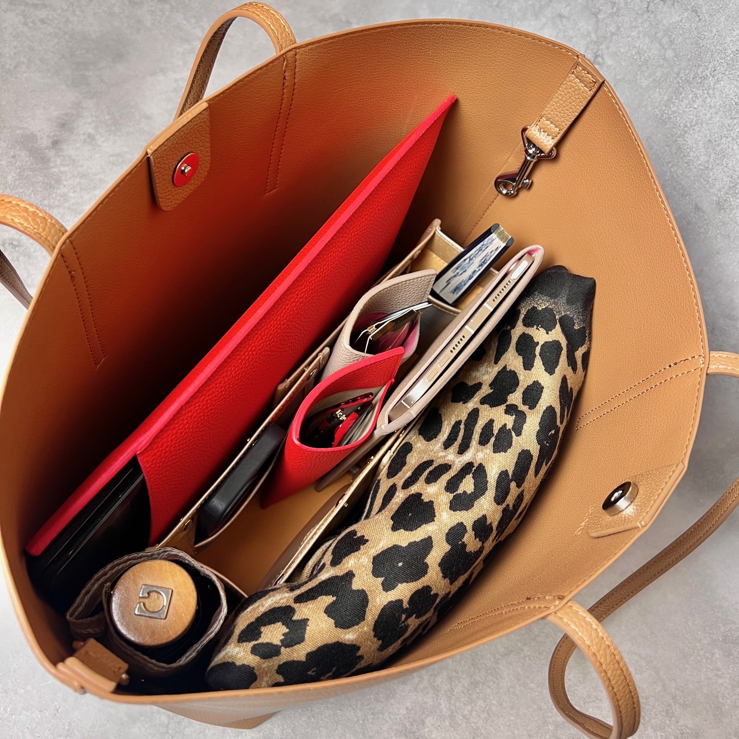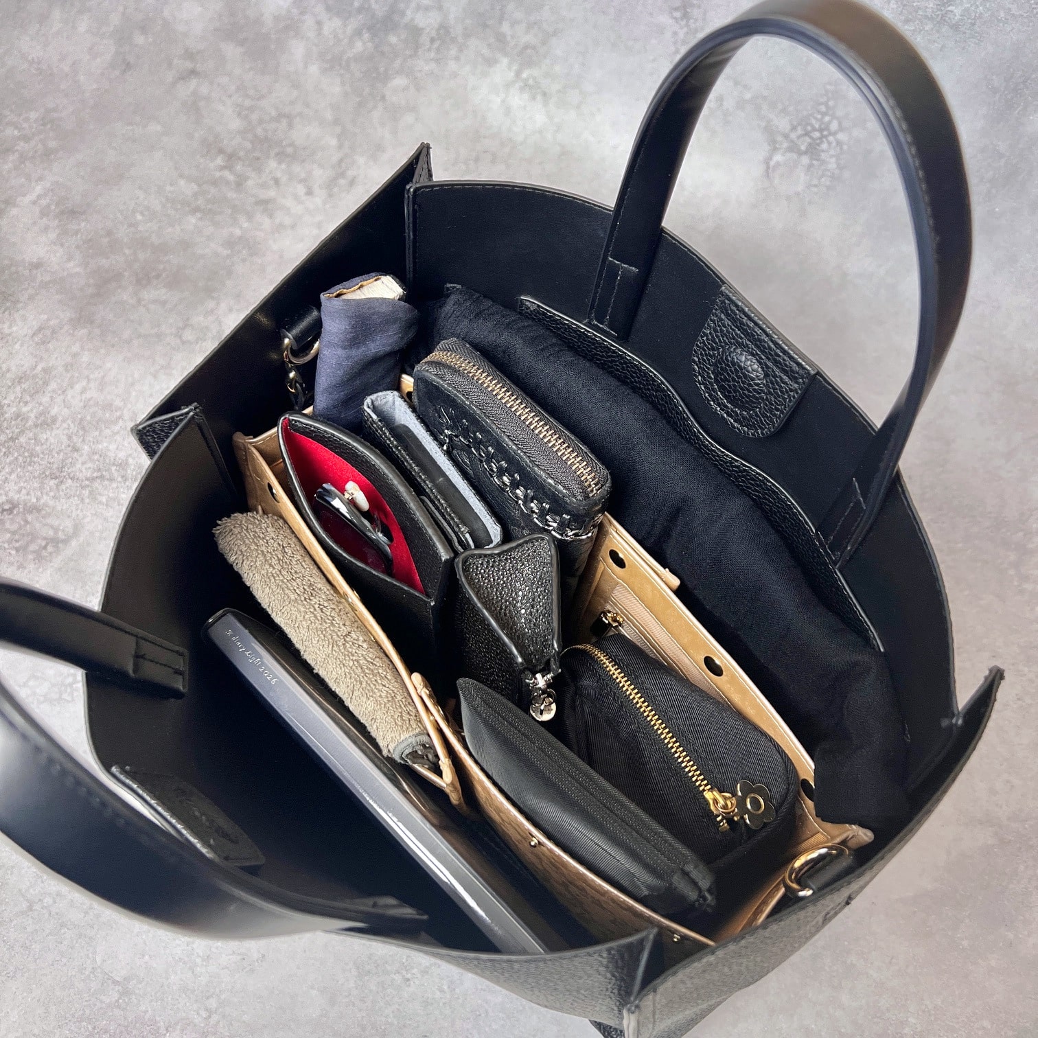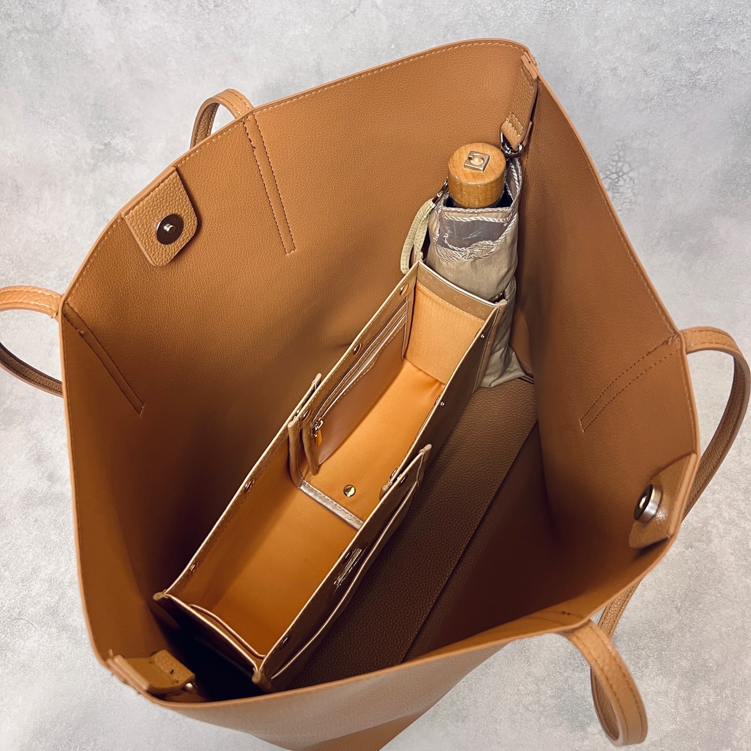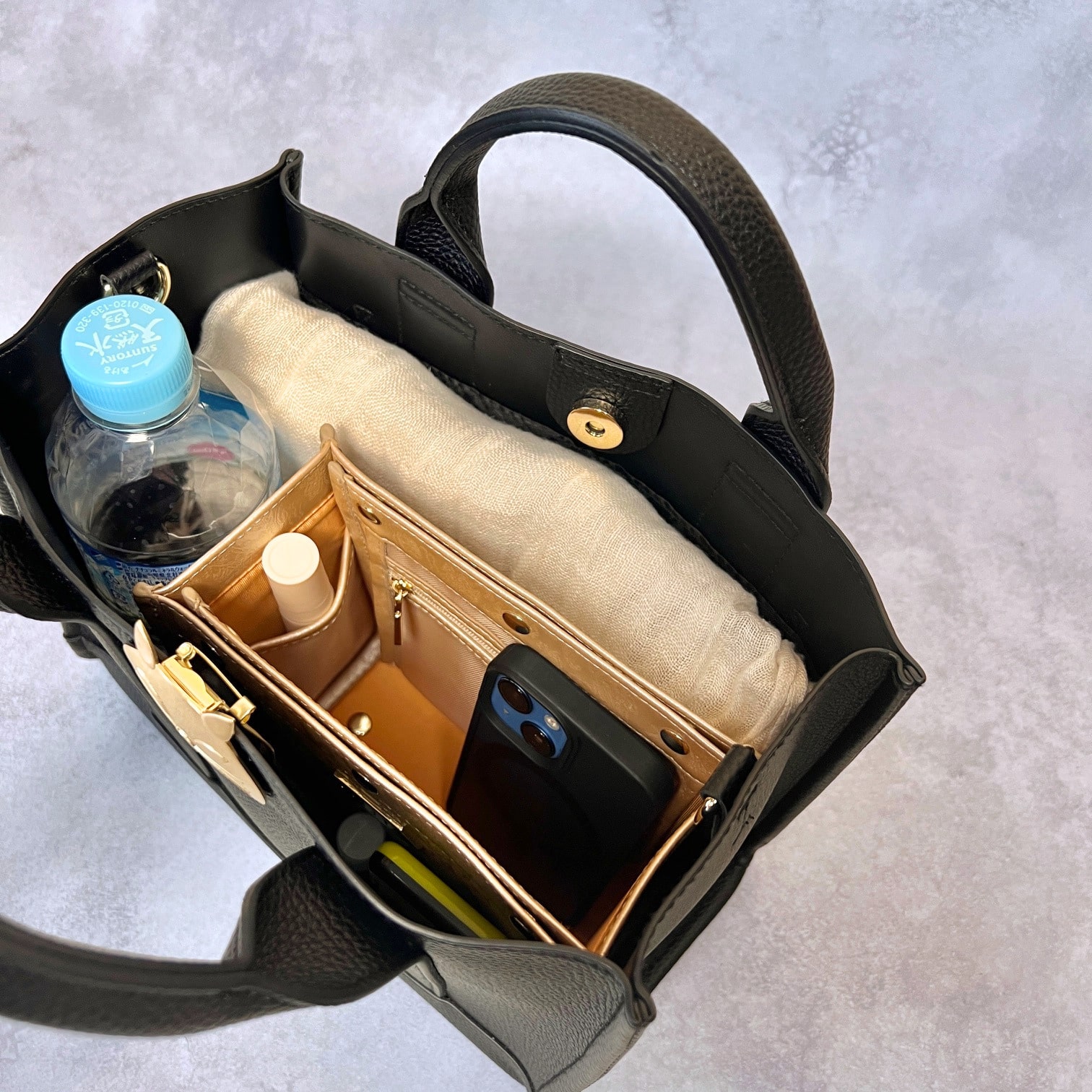 「スクエア型」バッグインバッグの概念を超えたと言われる特許機能付き横幅可変式の3WAYレイアウトオーガナイザー。バッグの中の空間設計を叶え、バッグの大きさや荷物に応じて大中小の3サイズから使い分けが可能です。収納することがゴールではなく、モノの出し入れをする時にストレスフリーな出し入れが叶うよう設計された完全自立型も特長。全4箇所のメッシュポケットは視認性が高く、軽量化のために上質なPUレザーを使用。ボックティッシュ約1箱分の軽さを実現いたしました。仕切り効果が高く、バッグの中が見やすくなる明るいカラーもポイントです。