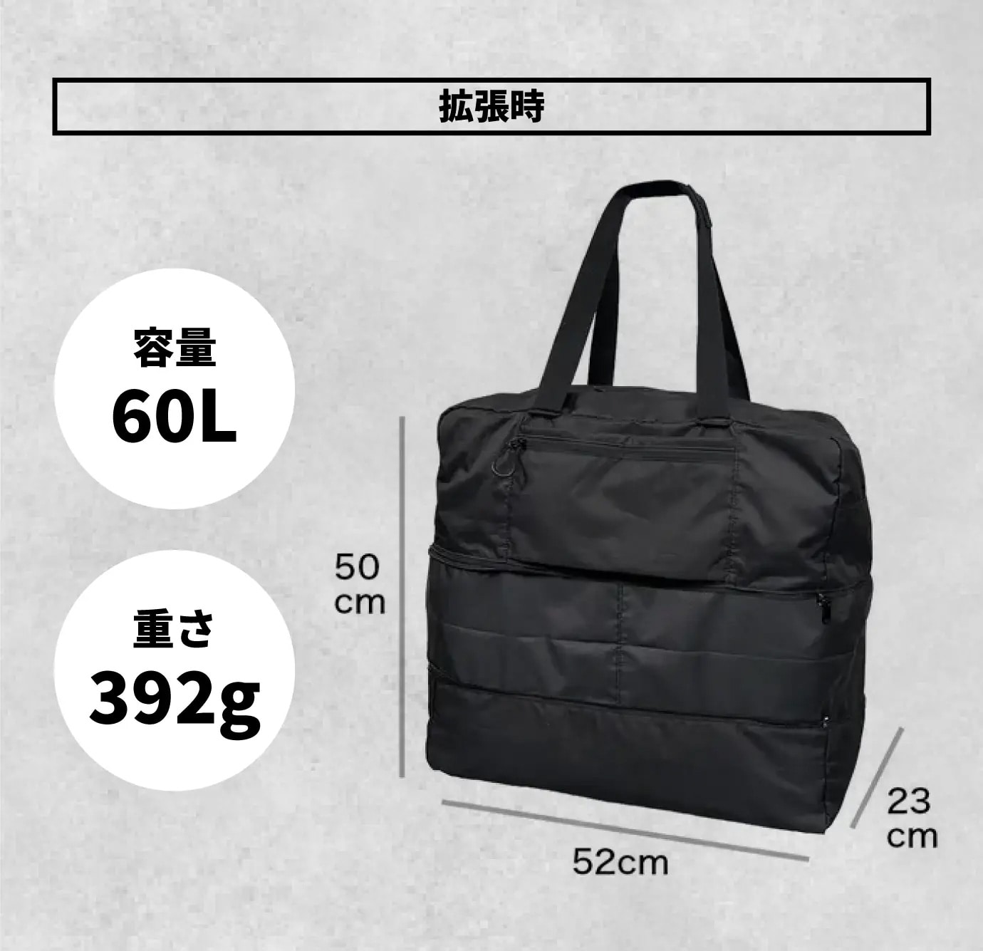 ショルダーベルトが付属。収納ケースにショルダーベルトを付け替えるとサコッシュとしての使用が可能。 42L→60Lに拡張可能な大容量ボストンバッグ!旅先の買い物など急に荷物が増えてもしっかり収納。A5ノートサイズに折りたたみ!コンパクトに収納できるので外に持ち出す際もかさばらず便利。耐水圧1000mmの撥水生地で雨の日も気にせず使える。耐久性にも優れた生地でアウトドアでも活躍