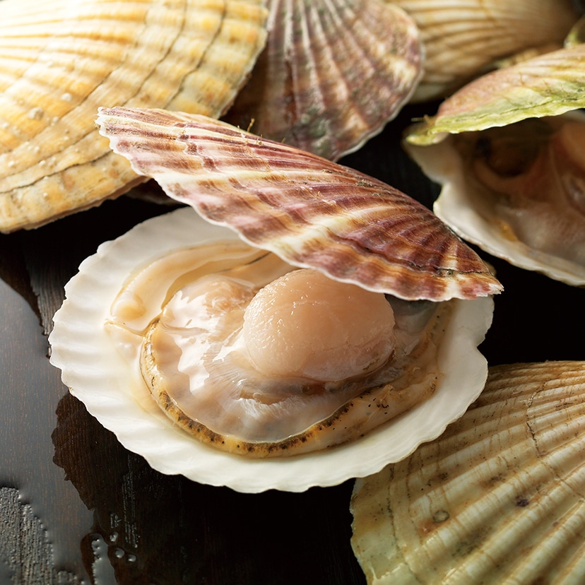 北海道産帆立貝柱の甘みとコクを引き立てる、天然海老の旨み、海苔の風味。