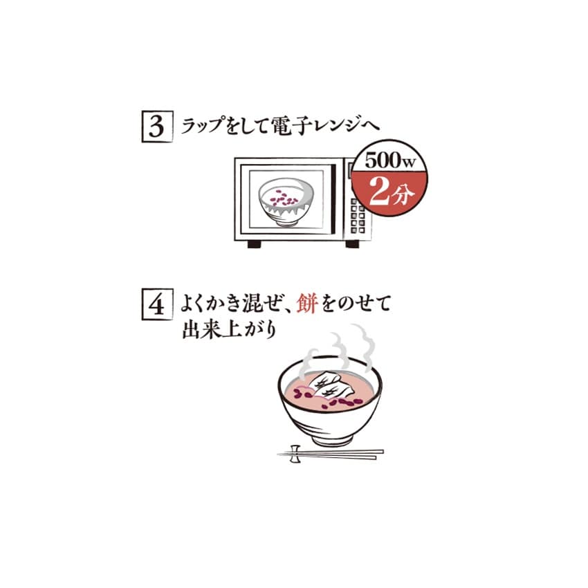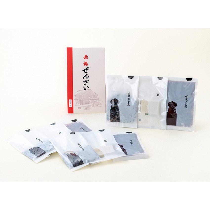 北海道産小豆のぜんざいに、ふっくら炊き上げた大納言小豆。