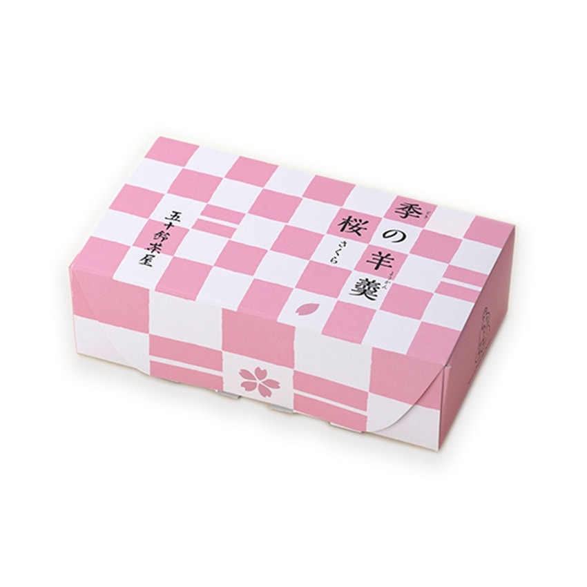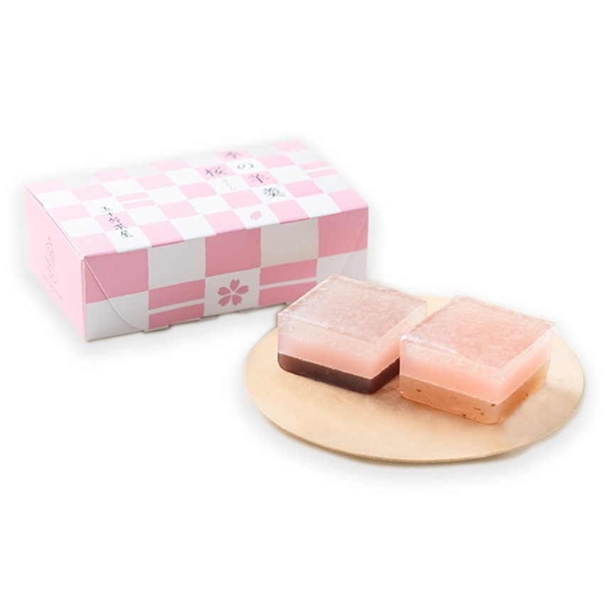 一番下の羊羹に刻んだ桜葉塩漬を使用しています。