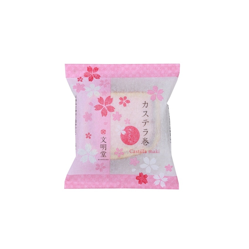桜のカステラをどら焼生地で巻きました。ちょこっとおやつにぴったりです。