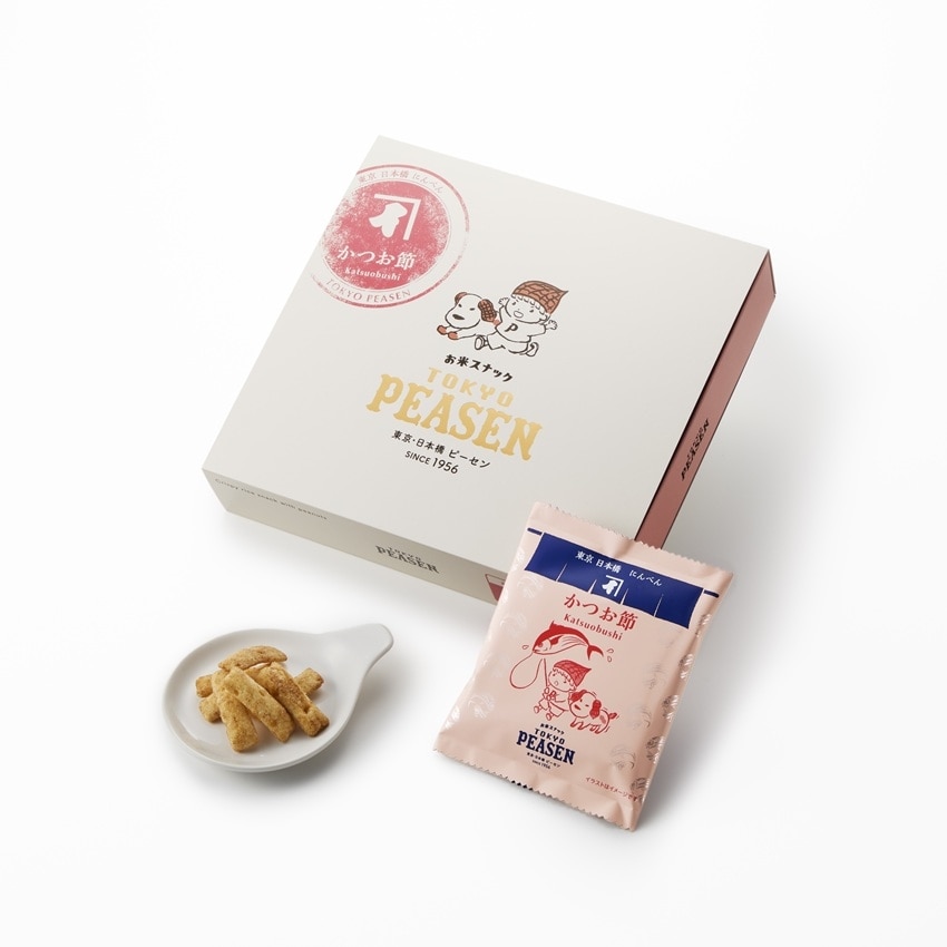 相性のよい味付鰹節粉末を使用し、かつお節の豊かなうま味を楽しめる味わい深いピーセン。サクッと軽やかで後引く食感。
