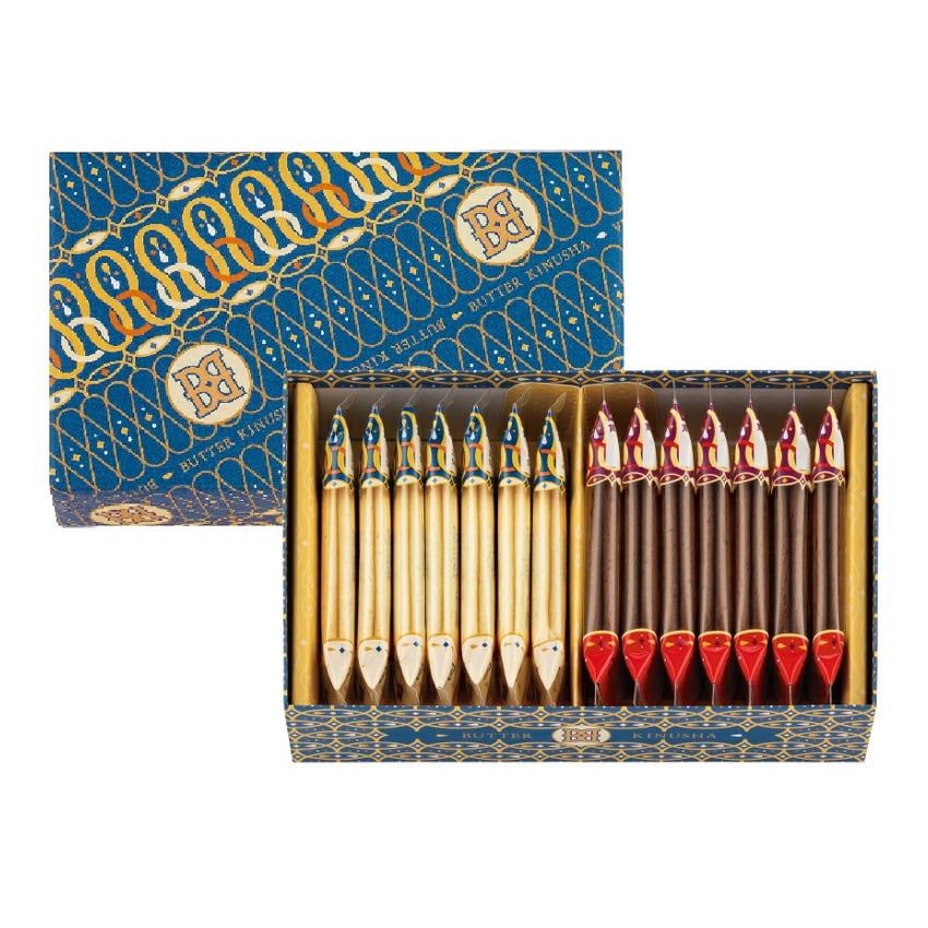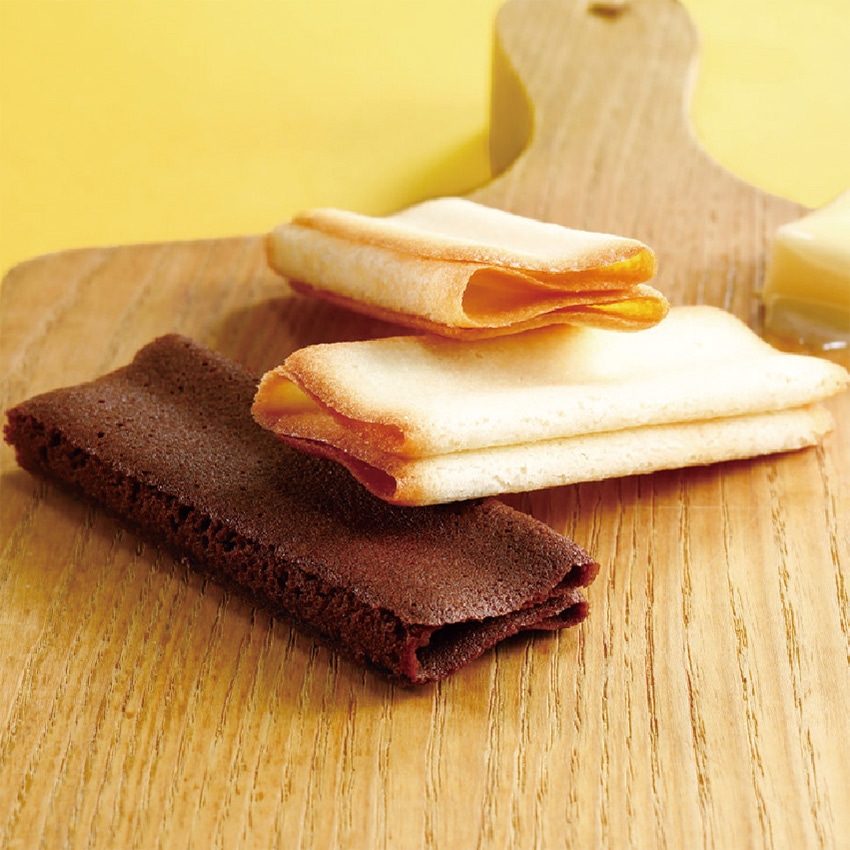 しゃりっとほどける繊細なくちどけ。力強いカカオのコクと香り広がる「チョコレート」、北海道産バターたっぷりの定番「バター」の2味の詰合せです。