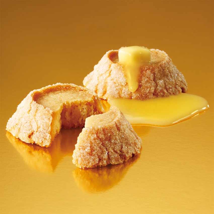 窯の熱でバターが溢れとろける「バターなだれとろけ製法」で香ばしく焼き上げました。生地に極限までたっぷり練りこんだバターが、なだれとろけた瞬間で焼きとめたこの形は、自然にうまれたおいしさの形です。