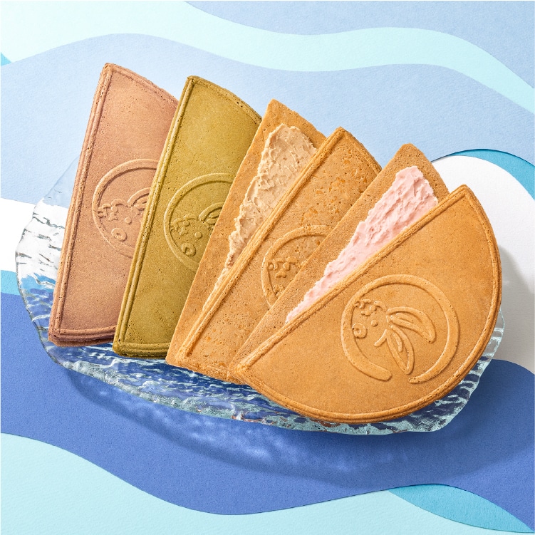 パリンッと香ばしく焼きあげたサクサク生地に、ふんわり軽やかなクリームをはさんだゴーフレットせんべい。〈鎌倉五郎本店〉の代表作である「鎌倉半月」は、シーンを選ばずに幅広くご利用いただける万能ギフトとして、愛され続けています。