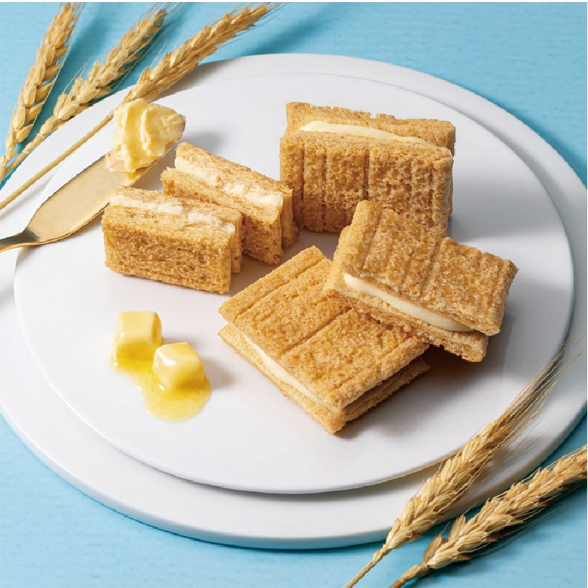 穀物の風味香るさっくり生地に芳醇な発酵バターを感じる独自ブレンドのバター。