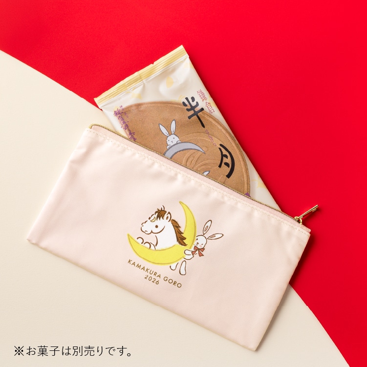 2026年の干支のうまと、半月うさぎが描かれたかわいいポーチが登場!優しい色合いで、見るたびに心が暖まるようなかわいいポーチです。