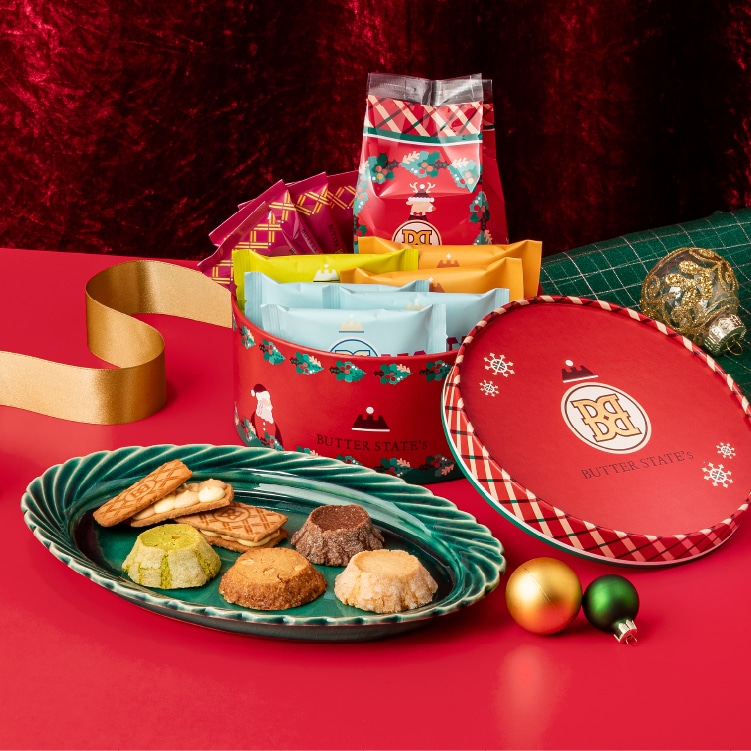 バラエティ豊かなバターの香りあふれる焼菓子を集めた豪華な詰合せ。定番から新作まで、バターステイツの魅力が存分に楽しめます。クリスマス限定のボックスに入って、贈り物やパーティにもぴったり!