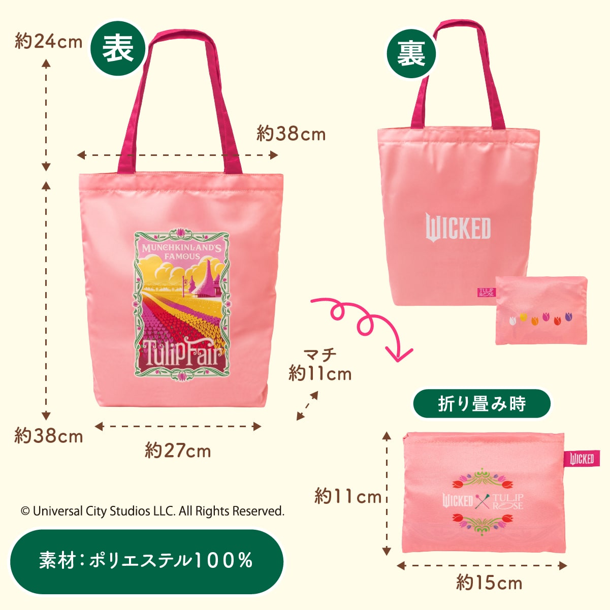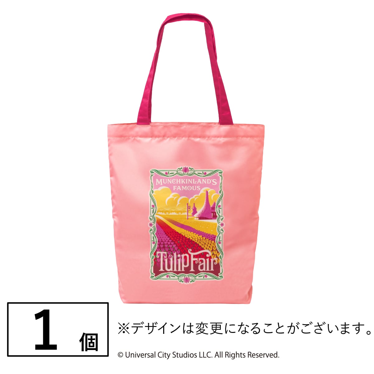 映画『ウィキッド 永遠の約束』の舞台の一部であるマンチキンランドに広がる華やかなチューリップ畑が描かれたエコバッグです。