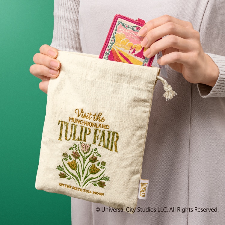いくつあっても困らない、便利な巾着ポーチ。おしゃれにデザインされたロゴやチューリップが刺繍で描かれた、豪華な巾着です。裏面には「WICKED」と「TOKYO TULIP ROSE」のロゴ入。