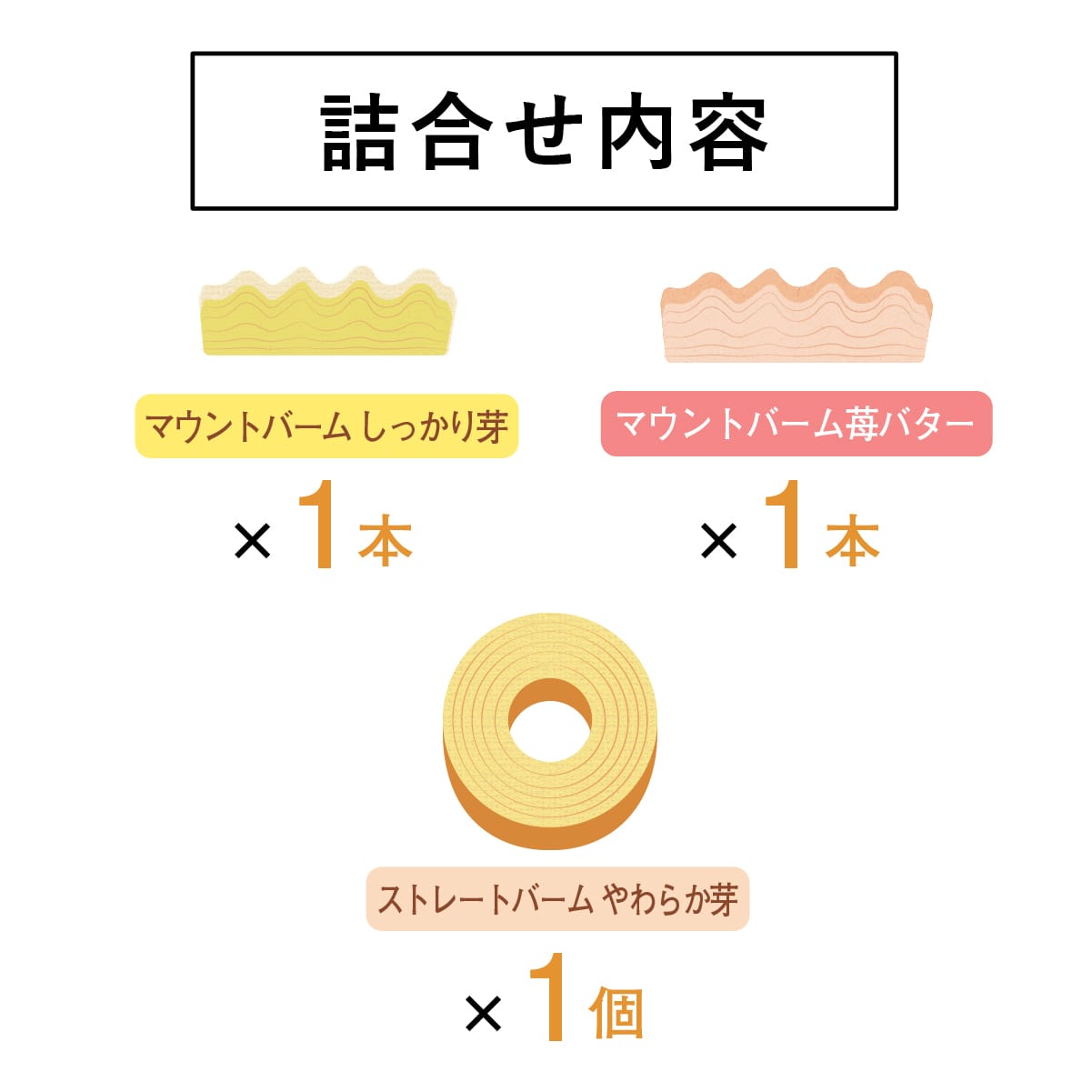 ねんりん家を代表する定番のバームクーヘンと、春の新作「マウントバーム 苺バター」を合わせたこの時季だけの詰合せ。定番も季節味もお楽しみいただける詰合せは、春の贈り物としてもおすすめです。