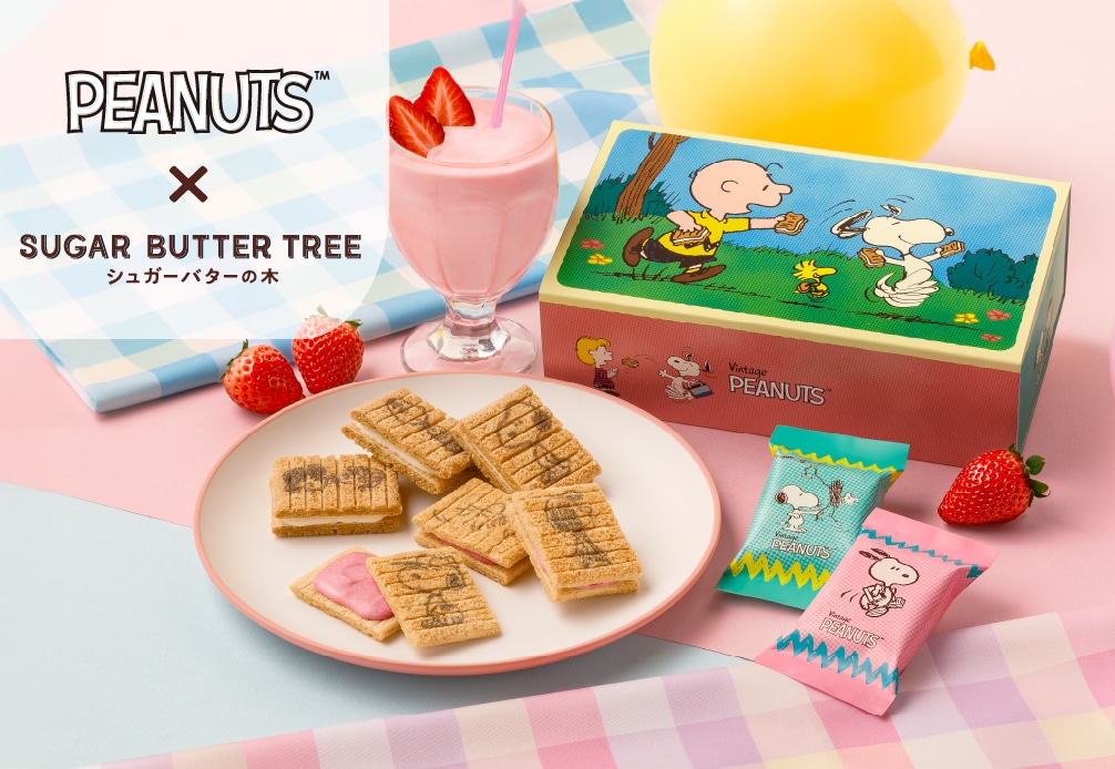 ブランド誕生15周年を迎えた「シュガーバターの木」とコミック誕生75周年を迎えた「PEANUTS」がコラボレーション!"しあわせというのは、ただ君のとなりにいるということ"をテーマに、みんなのしあわせに寄り添う特別なシュガーバターの木が出来ました。個性豊かな「PEANUTS」の仲間たちがいつも一緒にいるように、シュガーバターの木もいつもあなたに寄り添って、ホッとやすらぐおいしいひとときを提供します。