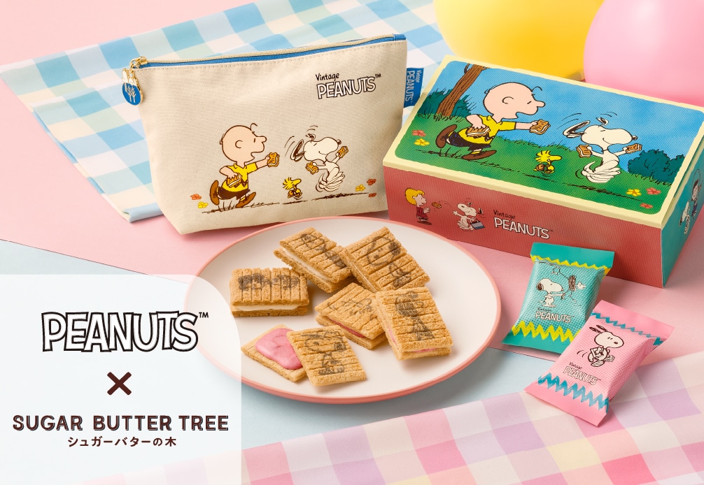 ブランド誕生15周年を迎えた「シュガーバターの木」とコミック誕生75周年を迎えた「PEANUTS」がコラボレーション!"しあわせというのは、ただ君のとなりにいるということ"をテーマに、みんなのしあわせに寄り添う特別なシュガーバターの木が出来ました。個性豊かな「PEANUTS」の仲間たちがいつも一緒にいるように、シュガーバターの木もいつもあなたに寄り添って、ホッとやすらぐおいしいひとときを提供します。