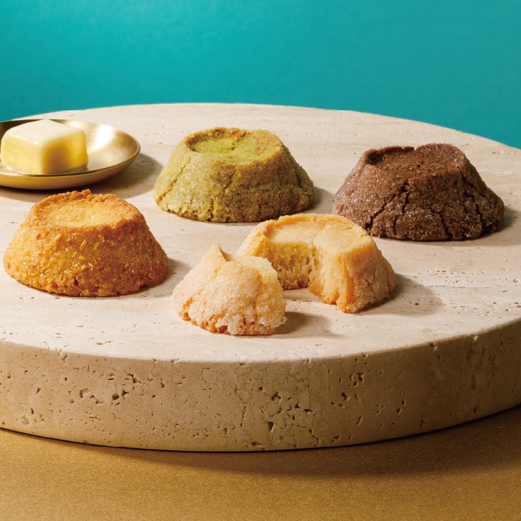 情熱こめて厳選配合したトリプルブレンドバターをたっぷり練り込み、窯の熱でバターが溢れとろける「バターなだれとろけ製法」で香ばしく焼き上げました。バタースイーツ専門店が、バター好きにお届けしたい、究極のバターリッチクッキーを4味集めた贅沢な詰合せです。