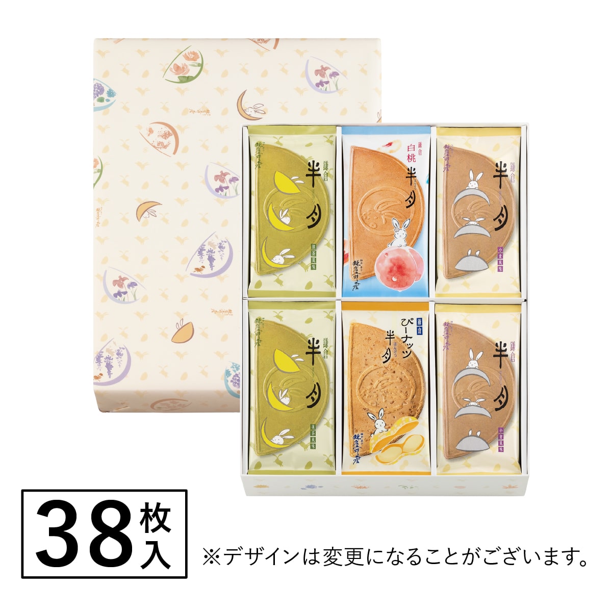 鎌倉半月 四色詰合せ<ぴーナッツ半月・白桃半月入> 38枚入