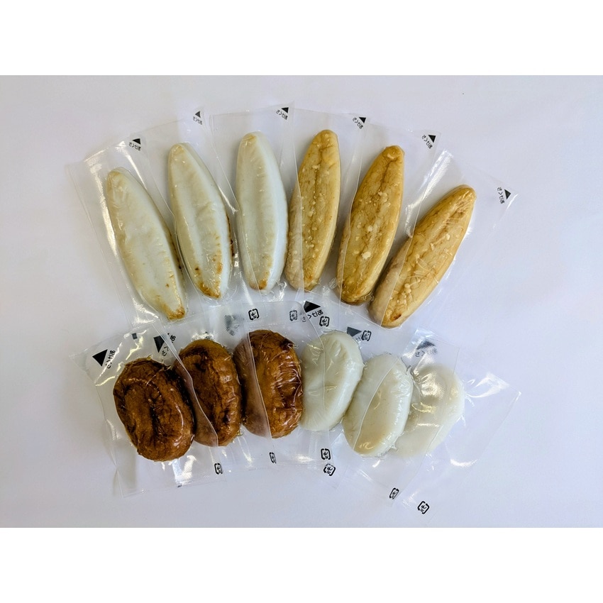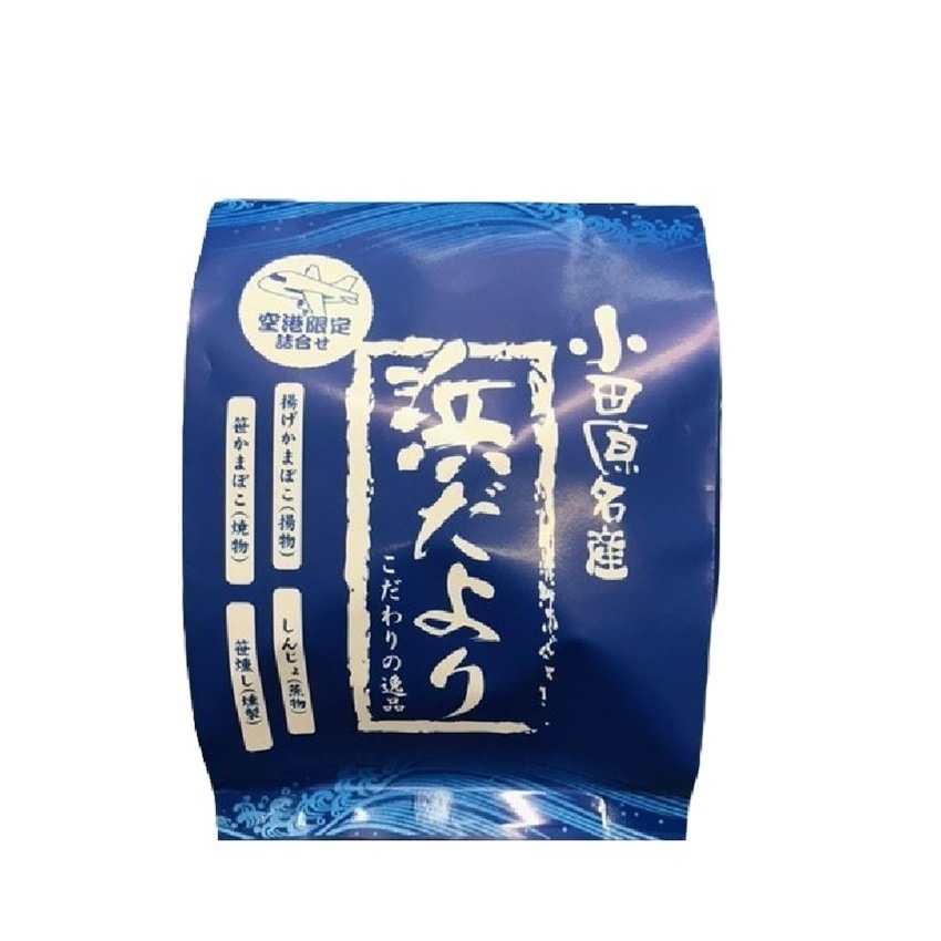 特に人気の高い「さつま揚げ」と「しんじょ」をそれぞれ1枚ずつ追加した、4種各3枚入りの空港限定詰め合わせです。