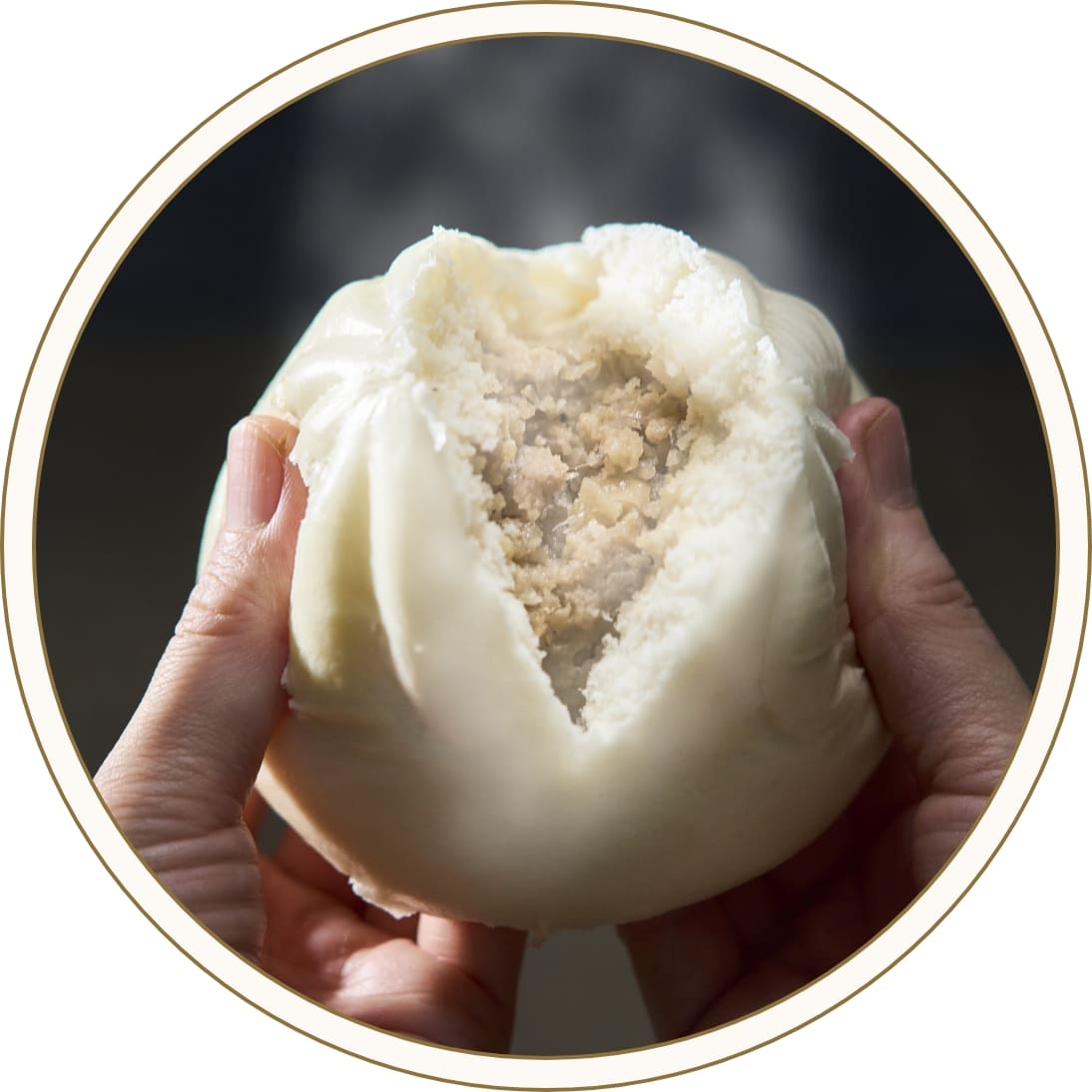 優しい味付けの中にピリッとして胡椒が効いているのは、名物「彩鳳ジャンボ焼売」と共通するポイント。高級中華料理店ならではの大人な味わいの肉まんに仕上げています。
