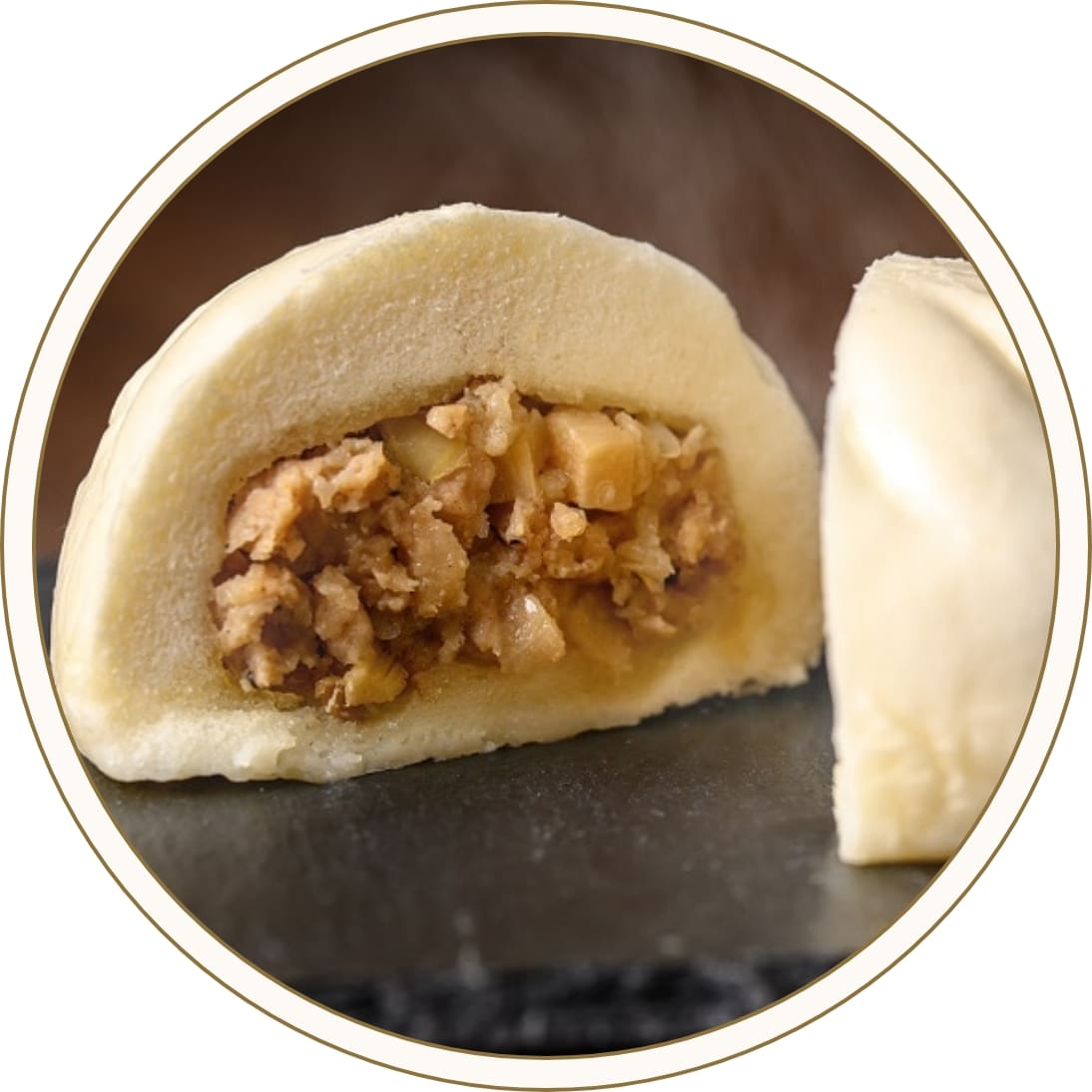 手の平を埋め尽くすほど大ぶりなサイズの本格派な肉まんです。モチッとした生地に加え、具材をふんだんに使っているため、ボリューム感がたっぷり。餡がぎっしりと詰まっているため、食べ応えのある仕上がりです。甘辛な味付けのジューシーな餡も好評で、空港で買ってからオンライン購入でリピートしてくれるお客様も増えています。