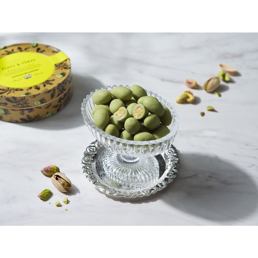 ローストしたピスタチオをピスタチオチョコレートで包みました。