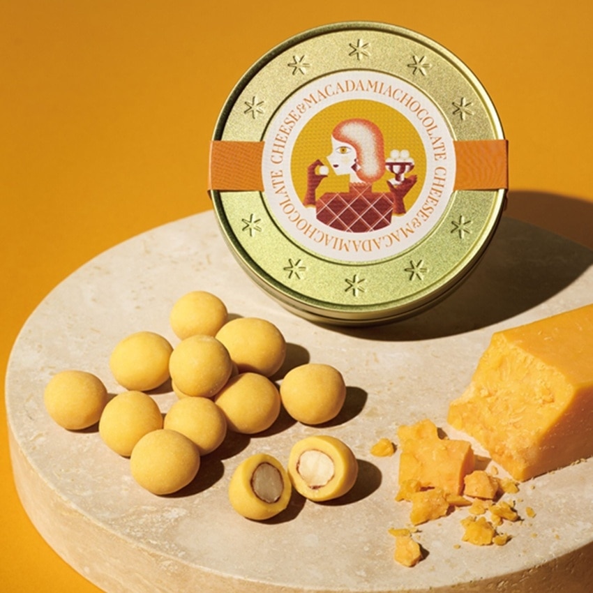 コクのあるチェダーチーズチョコレートでカリッと食感のキャンディングマカダミアナッツを包みました。
