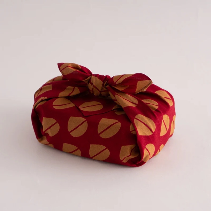 お弁当を包むのにちょうど良い約50cmの小風呂敷は、薄手で結びやすい綿生地に、裏表が目立ちにくい染め方でプリントしています。