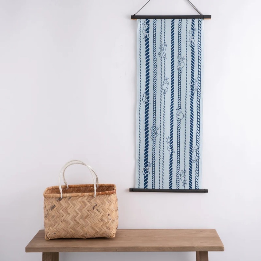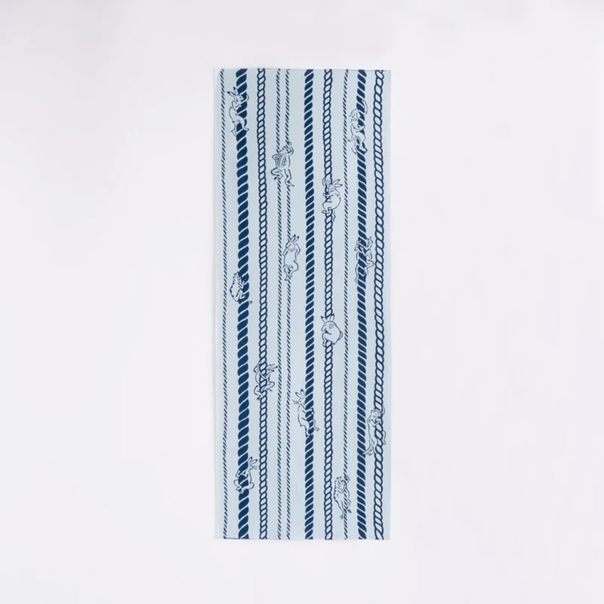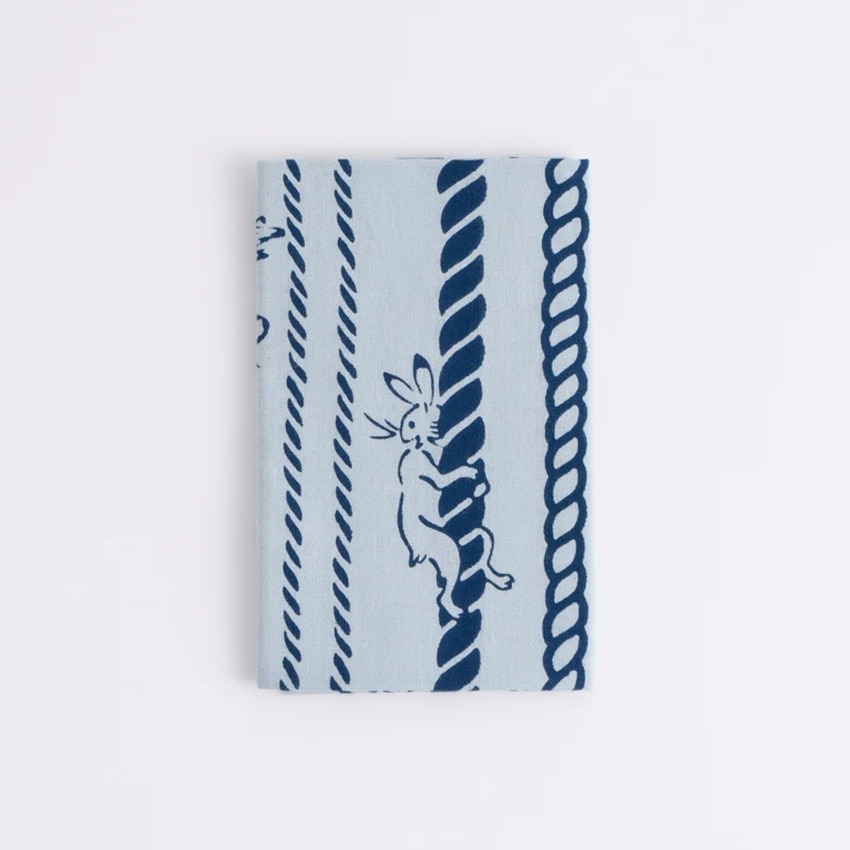 鳥獣戯画小紋 縄縞 水色