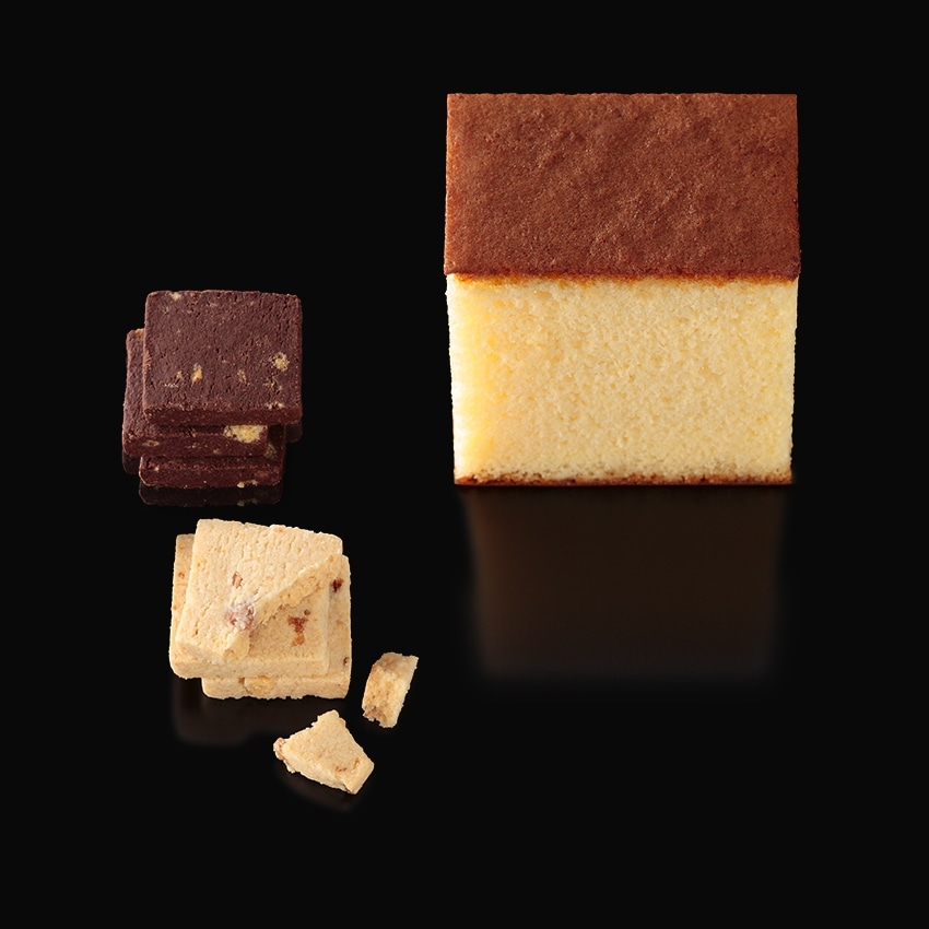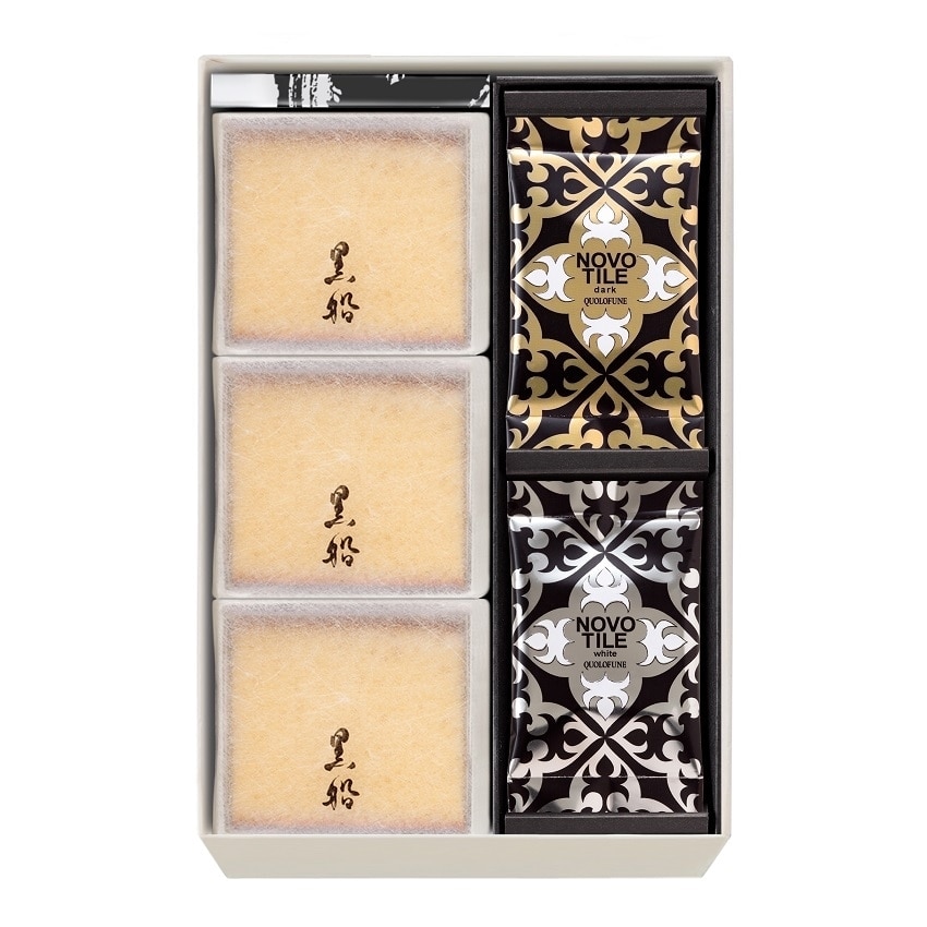 ■内容量:黒船カステラbebe3個・ノボタイル12枚(ダーク・ホワイト各6枚)