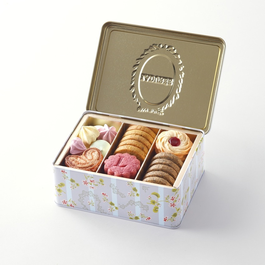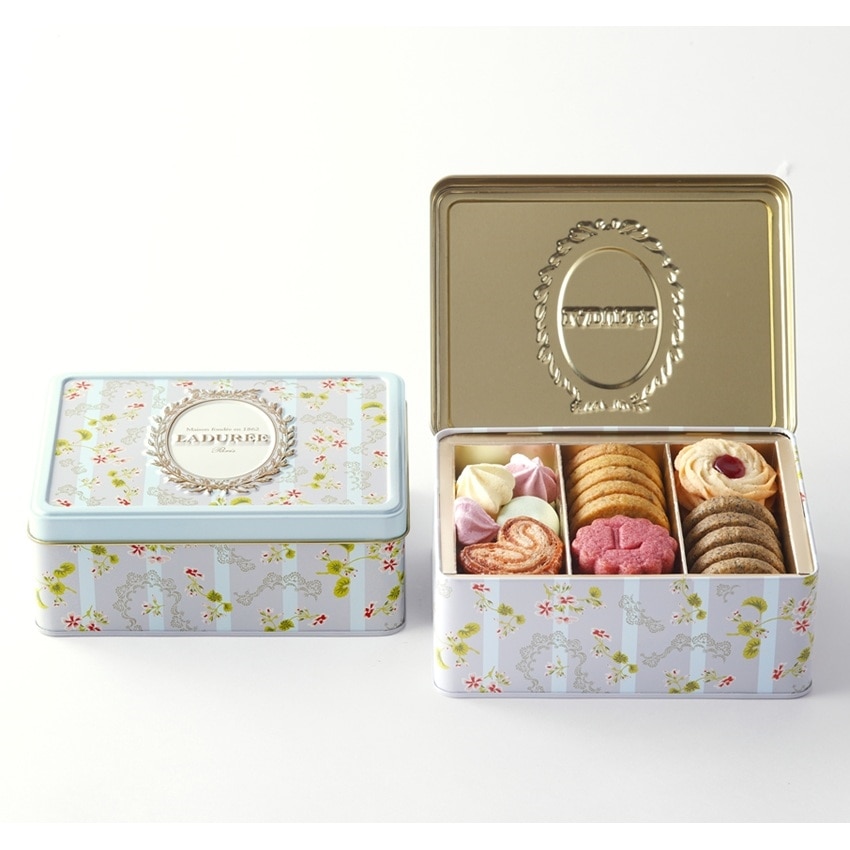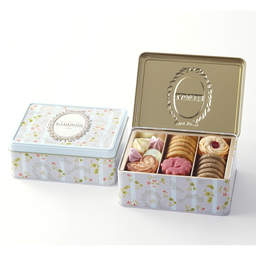 フランスのエレガンスとラデュレ流アール・ド・ヴィーヴルが詰まった缶ボックスに、香り、食感、彩りの異なる8種の焼き菓子を詰合わせました。