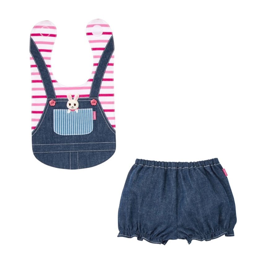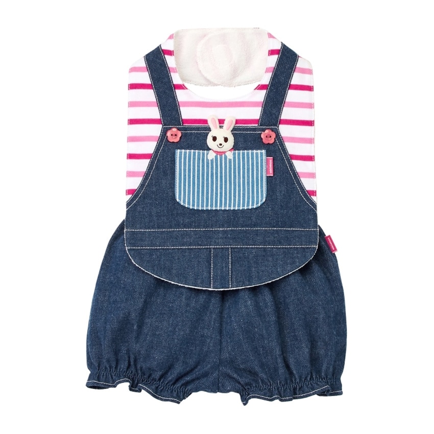 重ね着風のデザインで、ミキハウスのキャラクターうさことカラフルボタンがポイントです。