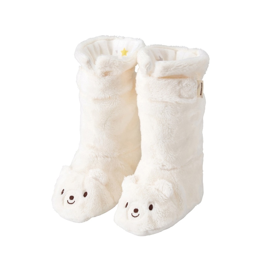 締めつけ感がなく、足にやさしくフィットして、内側はスムース素材で優しい肌あたりです。底部分には肉球型の滑り止め付きで、はき口の面ファスナーで調節可能です。